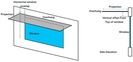 Five window shading configurations were tested on all windows: 0.00 m overhang (no shading), 0.25 m overhang, 0.50 m overhang, 0.75 m overhang, and 1.00 m overhang. Overhang depths bracket typical residential eave dimensions. These ranges allow regulatory compliance checks and practical feasibility to be assessed concurrently.