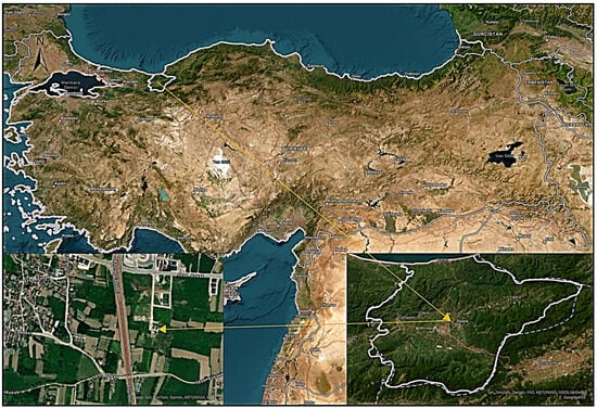 - Düzce Haritası. Available online: https://www.harita.gen.tr/81-duzce-haritasi/ (accessed on 15 December 2025).