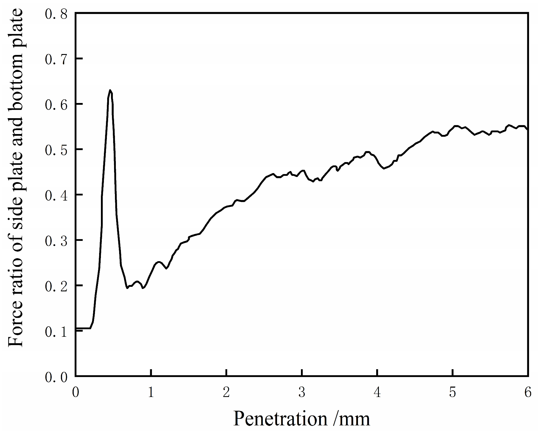 Figure 16. The evolution of the normal force ratio between the side plate and the bottom plate of the sample cylinder.