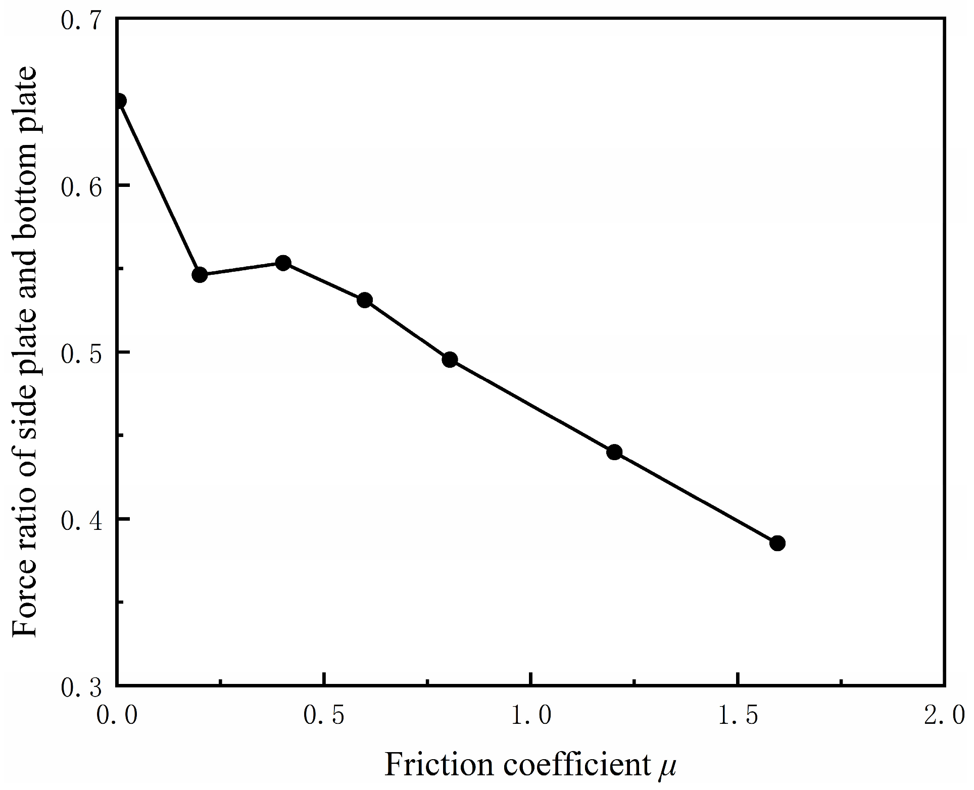 Figure 20. The change in the ratio of the normal force on the side plate and the bottom plate of the sample cylinder with μ.