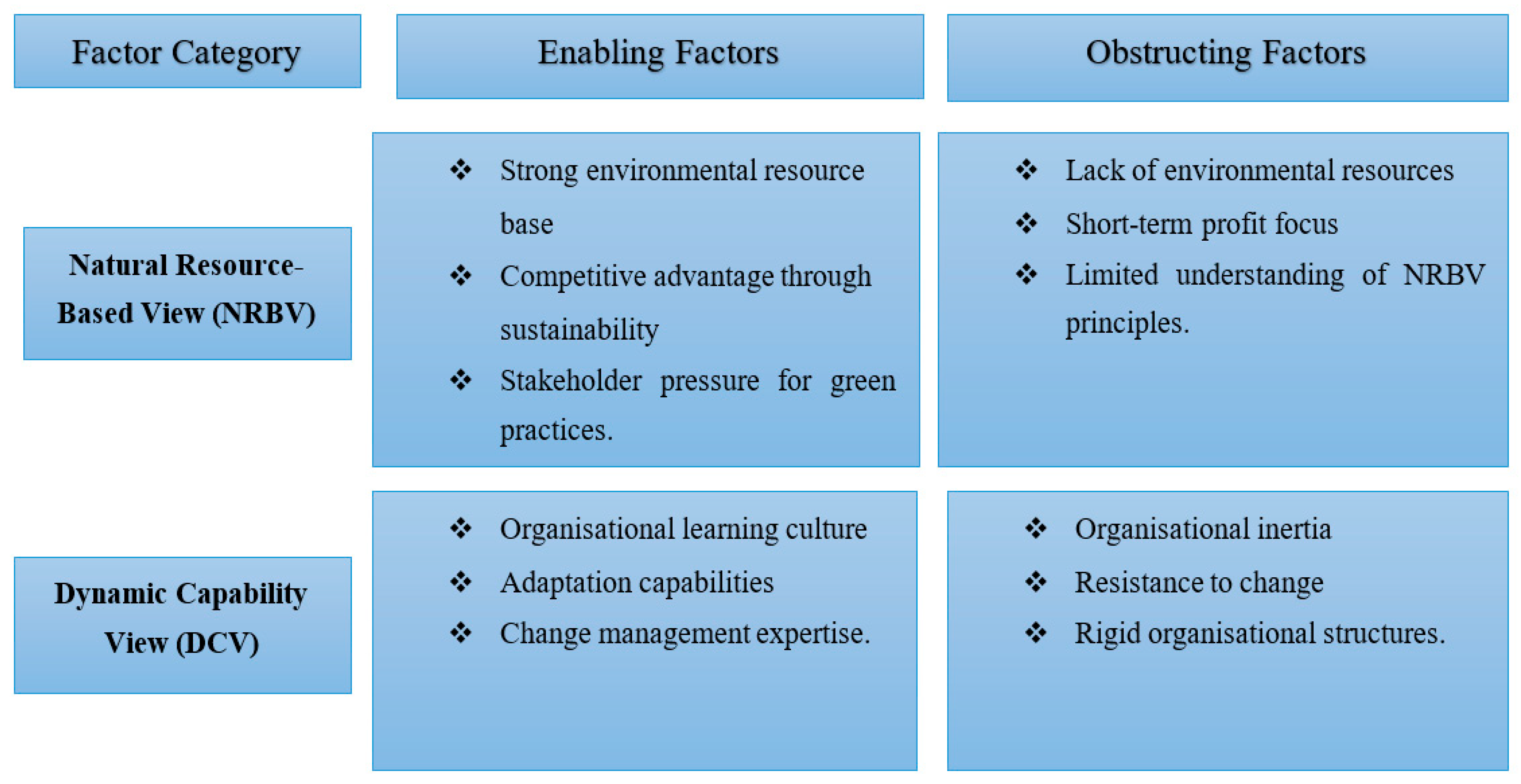 23] examination of adaptive strategies in international markets all confirm that dynamic capabilities enable sustained performance despite environmental turbulence. Construction firms lacking these capabilities struggle with sustainability implementation despite possessing technical knowledge, validating the DCV’s emphasis on adaptive capacity over static resources.