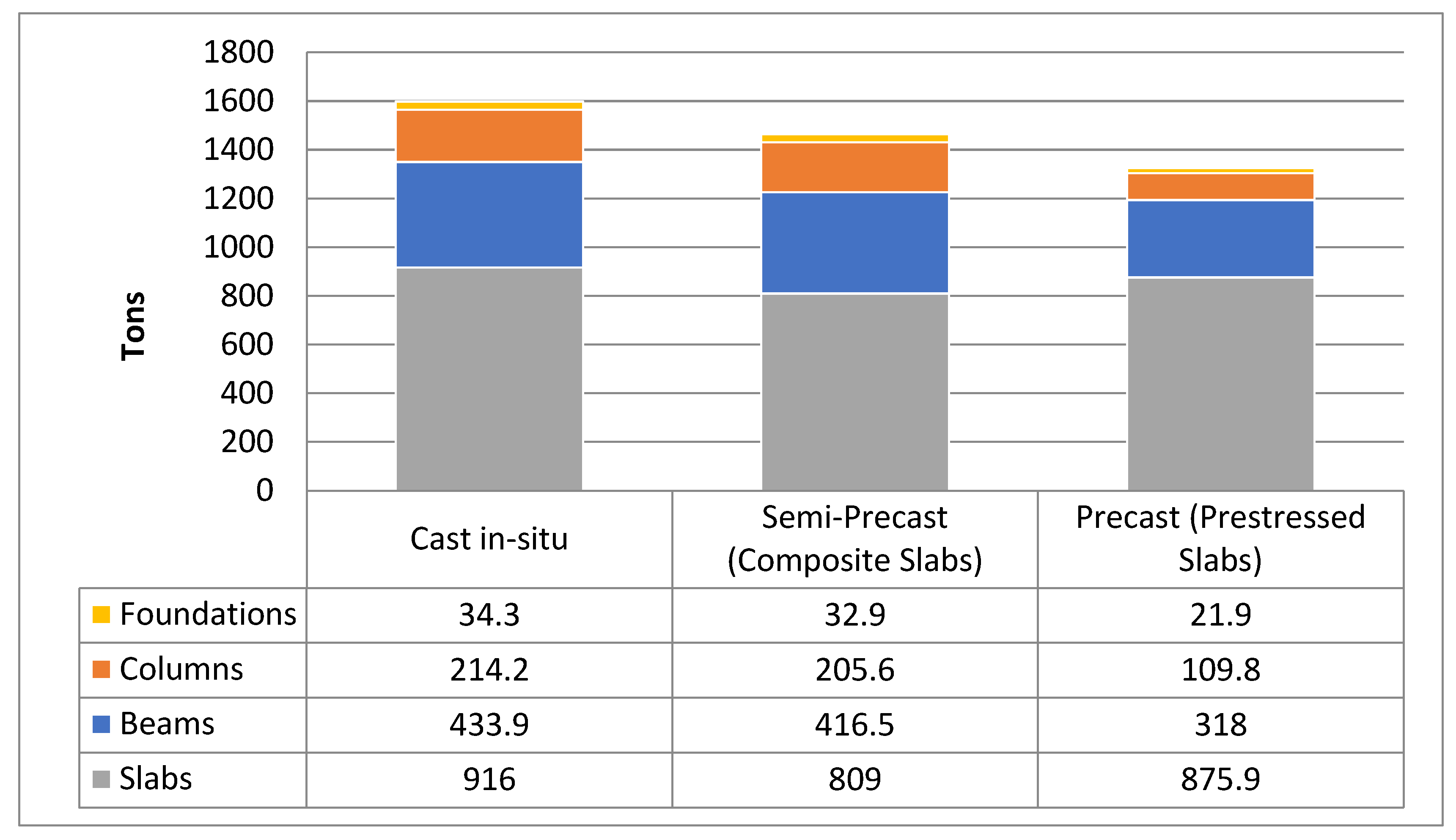 | Element | Cast In Situ Structure | Semi-Precast Structure | Precast Prestressed Slab Structure |