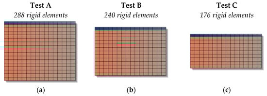 In this research, the previously described kinematics formulation of the HM scheme was implemented into a dedicated RBSM-HM code developed in MATLAB v. R2023b [42]. The approach was then applied and validated on the six case-study panels, discretized as illustrated in Figure 6 using a highly reduced number of heuristic atoms, ensuring a significant computational efficiency.