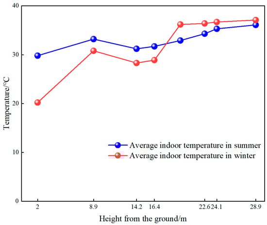 Comparison of trends in the distribution of mean indoor temperatures at different heights.