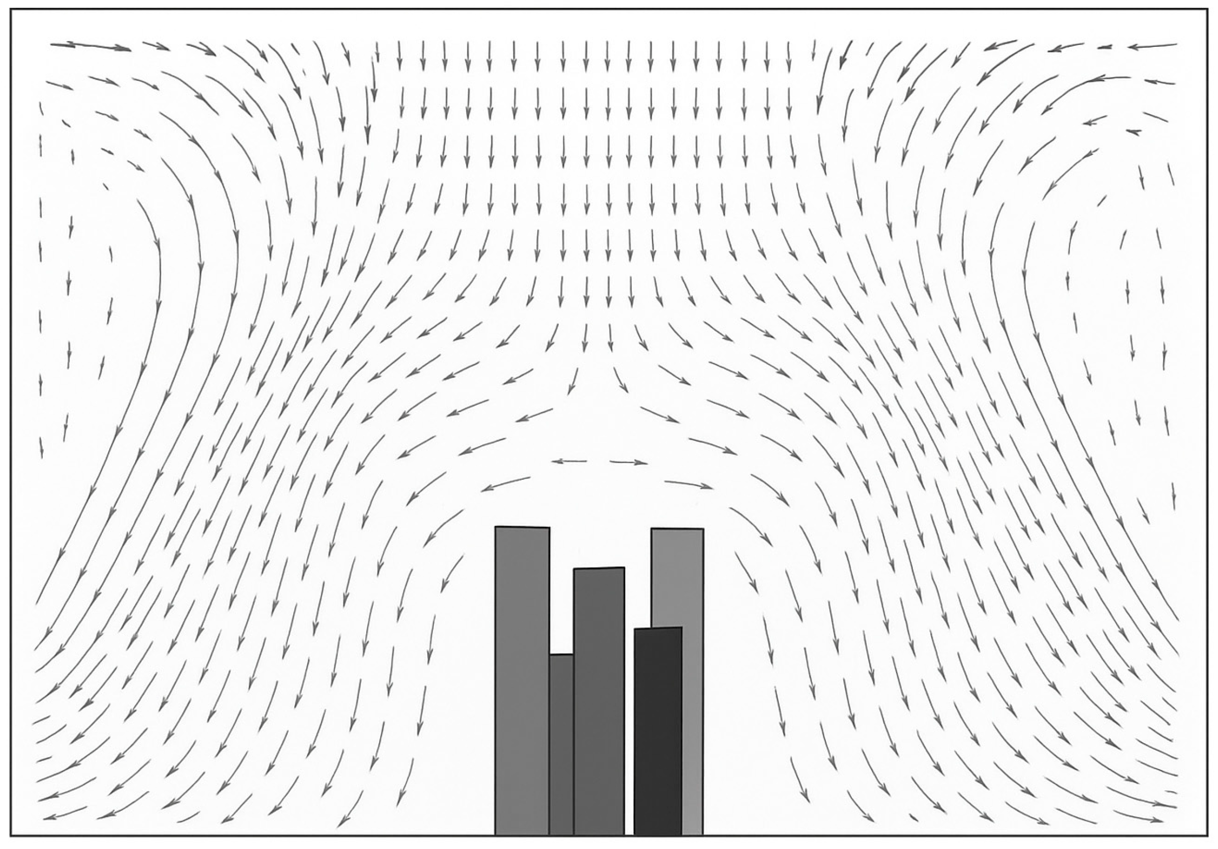 Despite the overall downward flow, crossflows and lateral components introduced by obstructions pose a risk of air re-entry or backflow into the sterile surgical zone. This highlights that laminar flow is not preserved uniformly across the entire width and that obstructions above the surgical site significantly affect the airflow integrity.