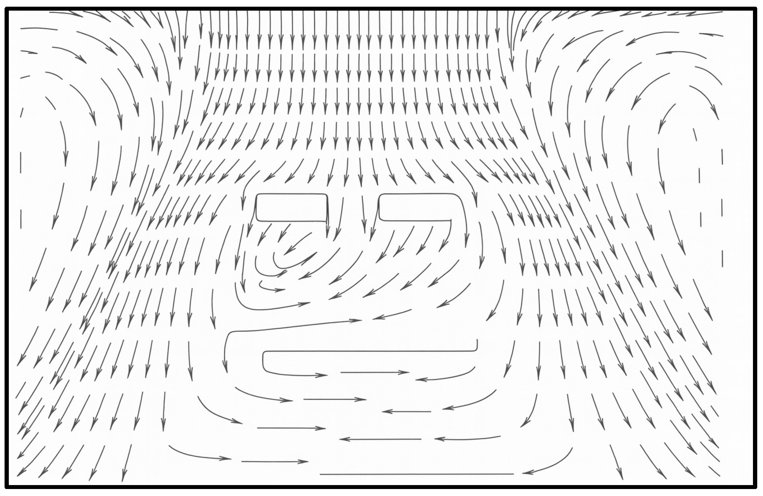 27] in their attempt to find the effect of thermal plumes caused by human beings. The mannequins are arranged on both sides of the surgical table. The velocity vector plot shown in