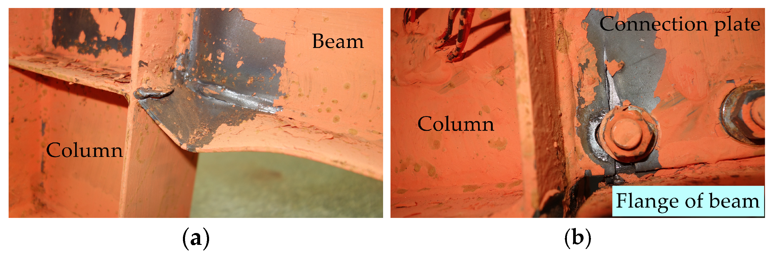 | Specimen | Type of Joint | Connection Method of the Column Flange | Connection Method of the Beam | SQC (kg) | |
