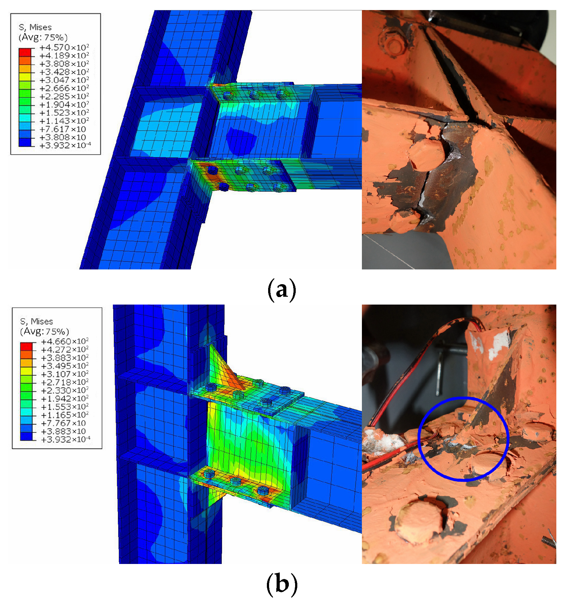 - Wang, K.; Li, Z.; Rong, B.; Zhang, R.; Sun, Y.; Zhang, W. Experimental and numerical research on hysteretic behavior of bolted end-plate connections. Structures 2025, 73, 108397. [Google Scholar] [CrossRef]