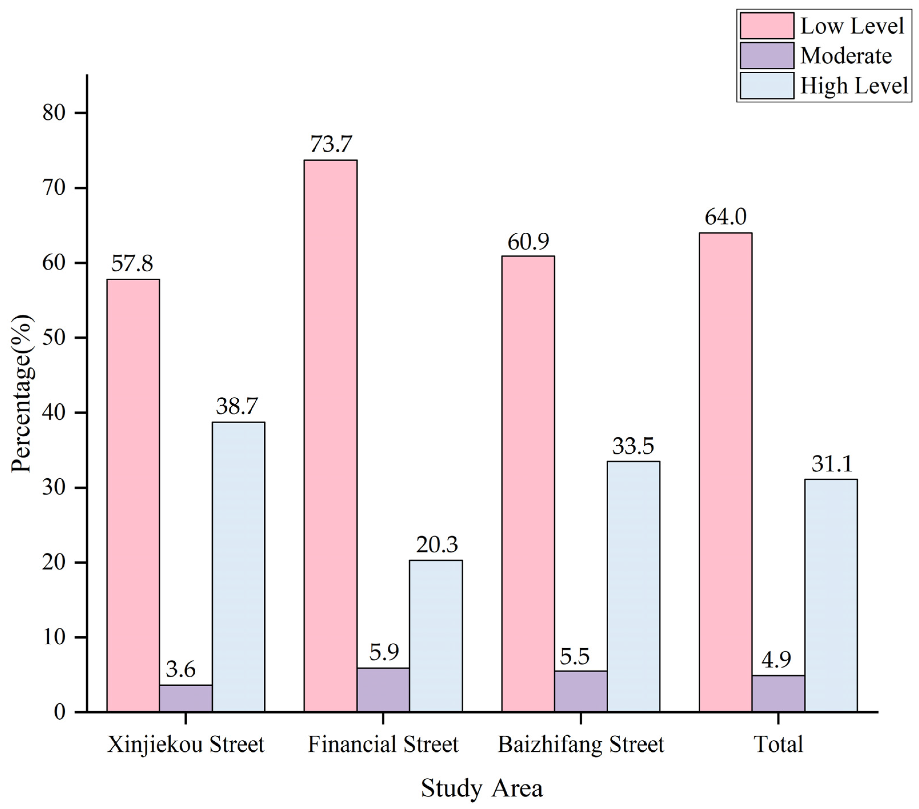 | Objective Built Environment | Urban Function within the Area (Facility Accessibility) | Leisure Facility Accessibility | Accessibility of Parks, Green Spaces, Plazas, and Open Spaces within the Three Different Streets | [15,20] |