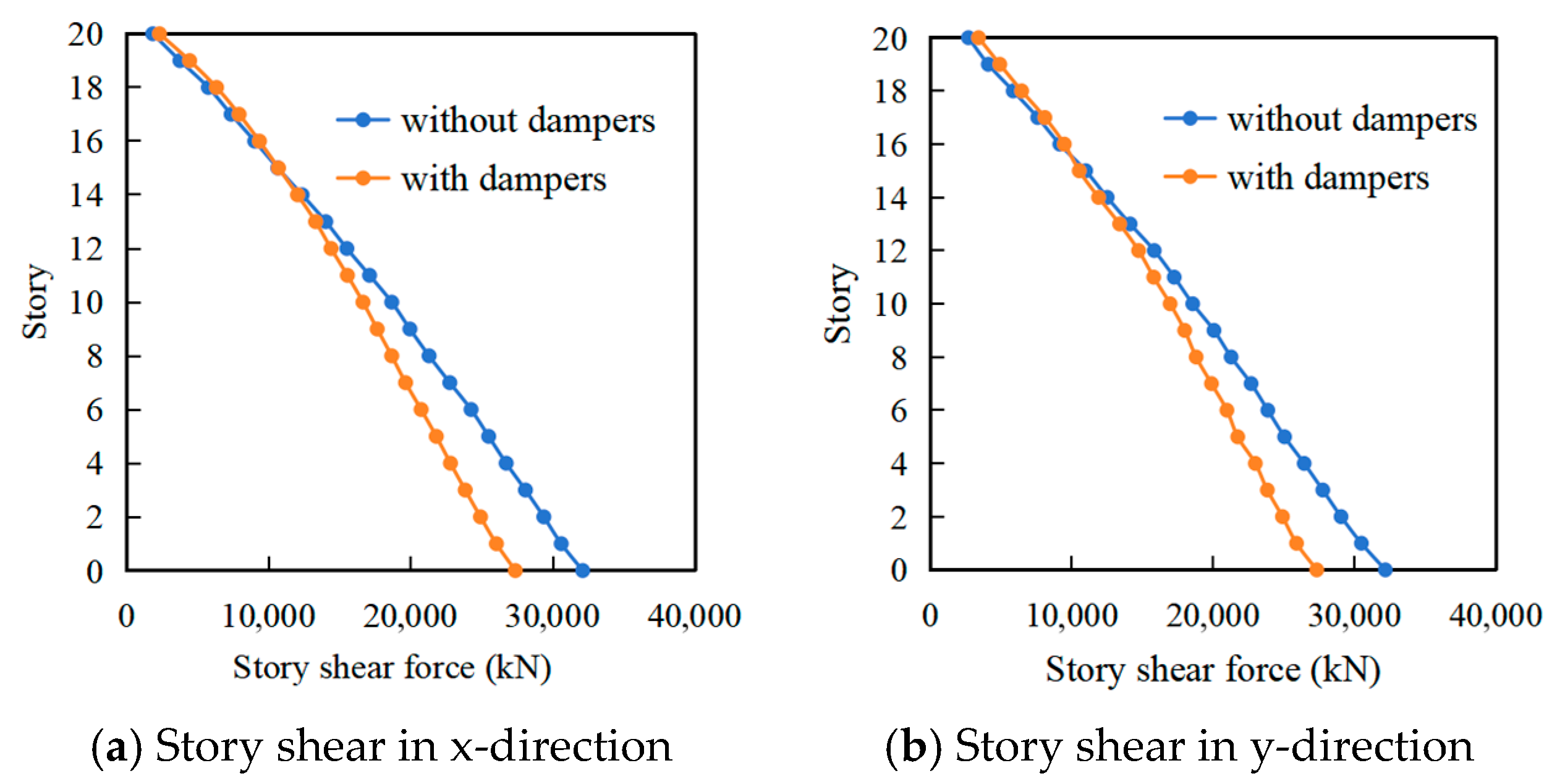- Cheng, X.P.; Li, W.; Lai, Z.Y. Application of Isolation Bearings and Viscous Dampers in Shanxi Science and Technology Innovation City. In Proceedings of the 12th China-Japan Conference on Building Structures, Chongqing, China, 23 September 2017; pp. 1–12. [Google Scholar]