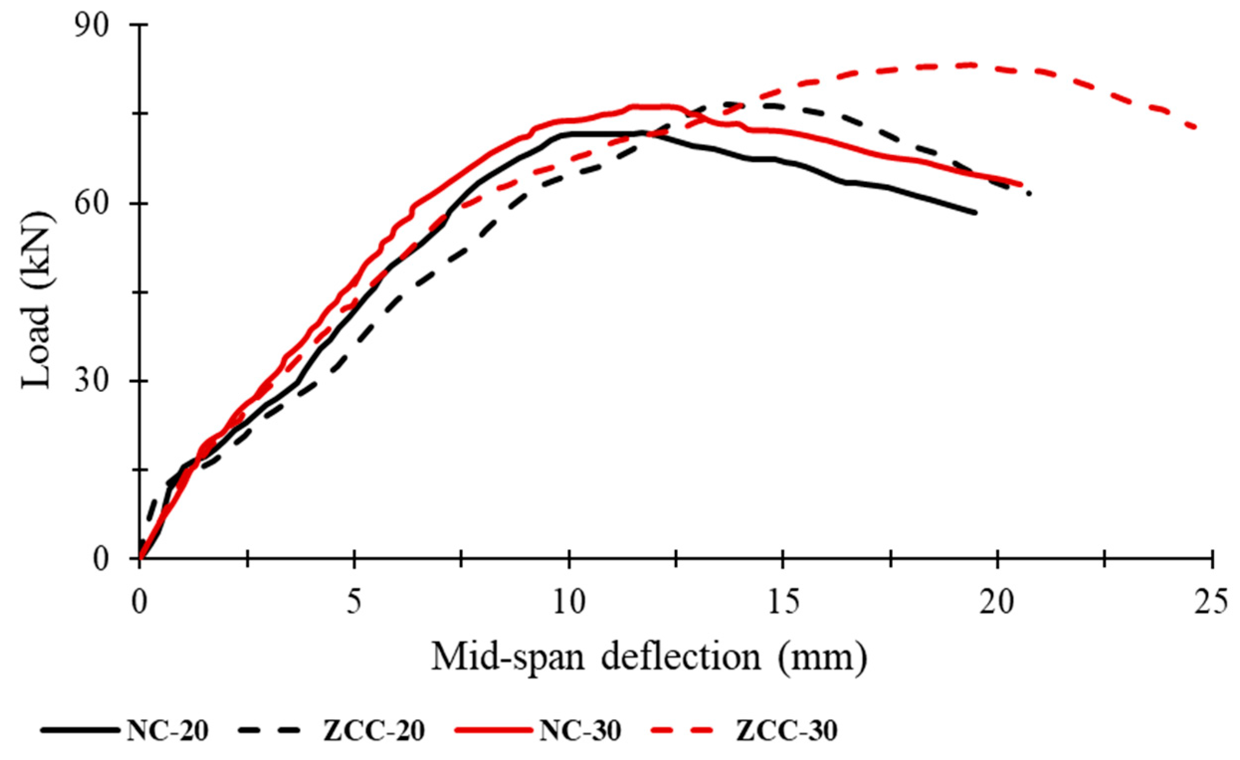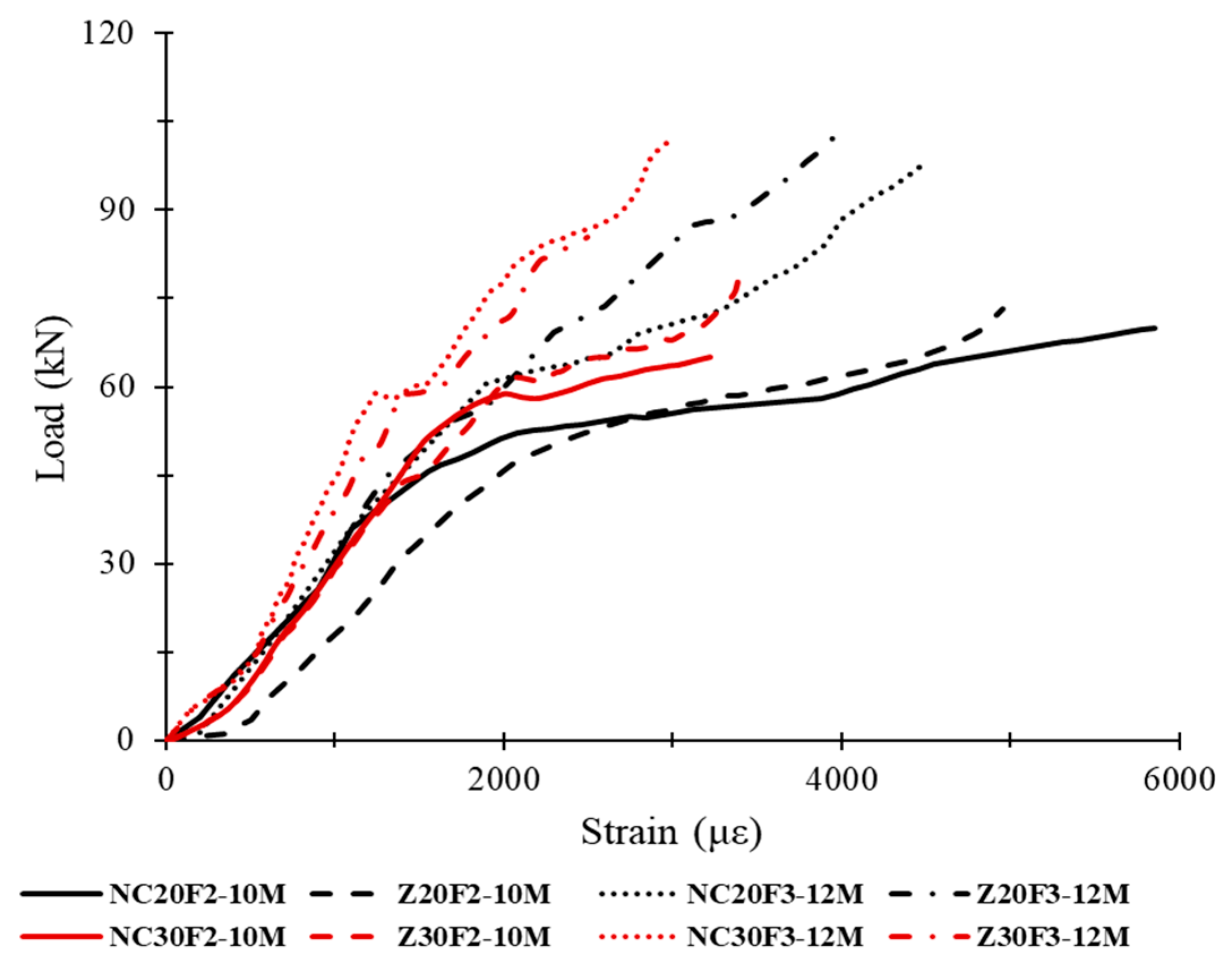 3.4.2. Load–Strain Behavior Under Monotonic Loading