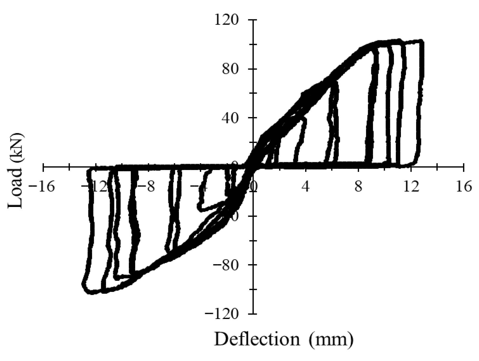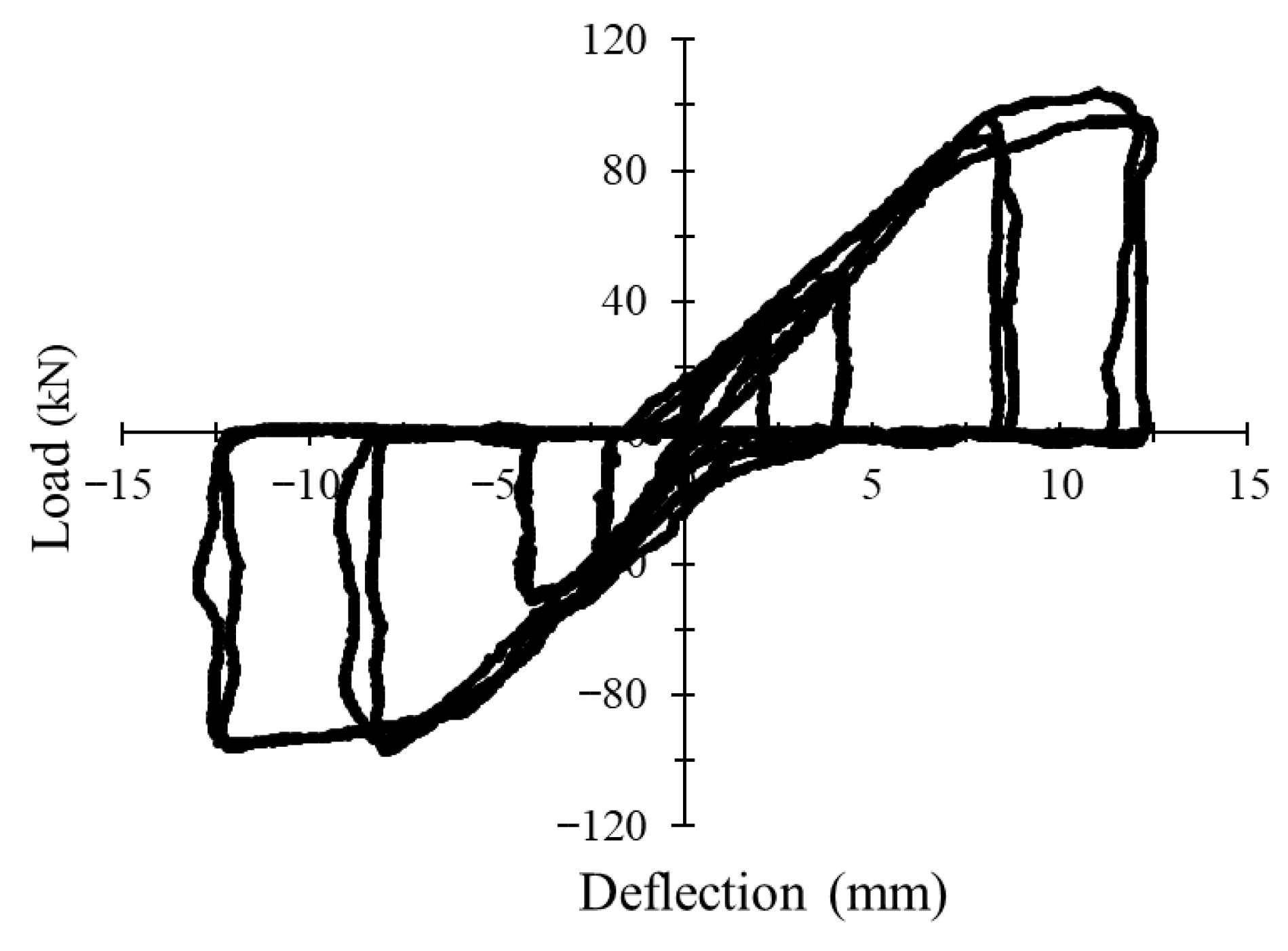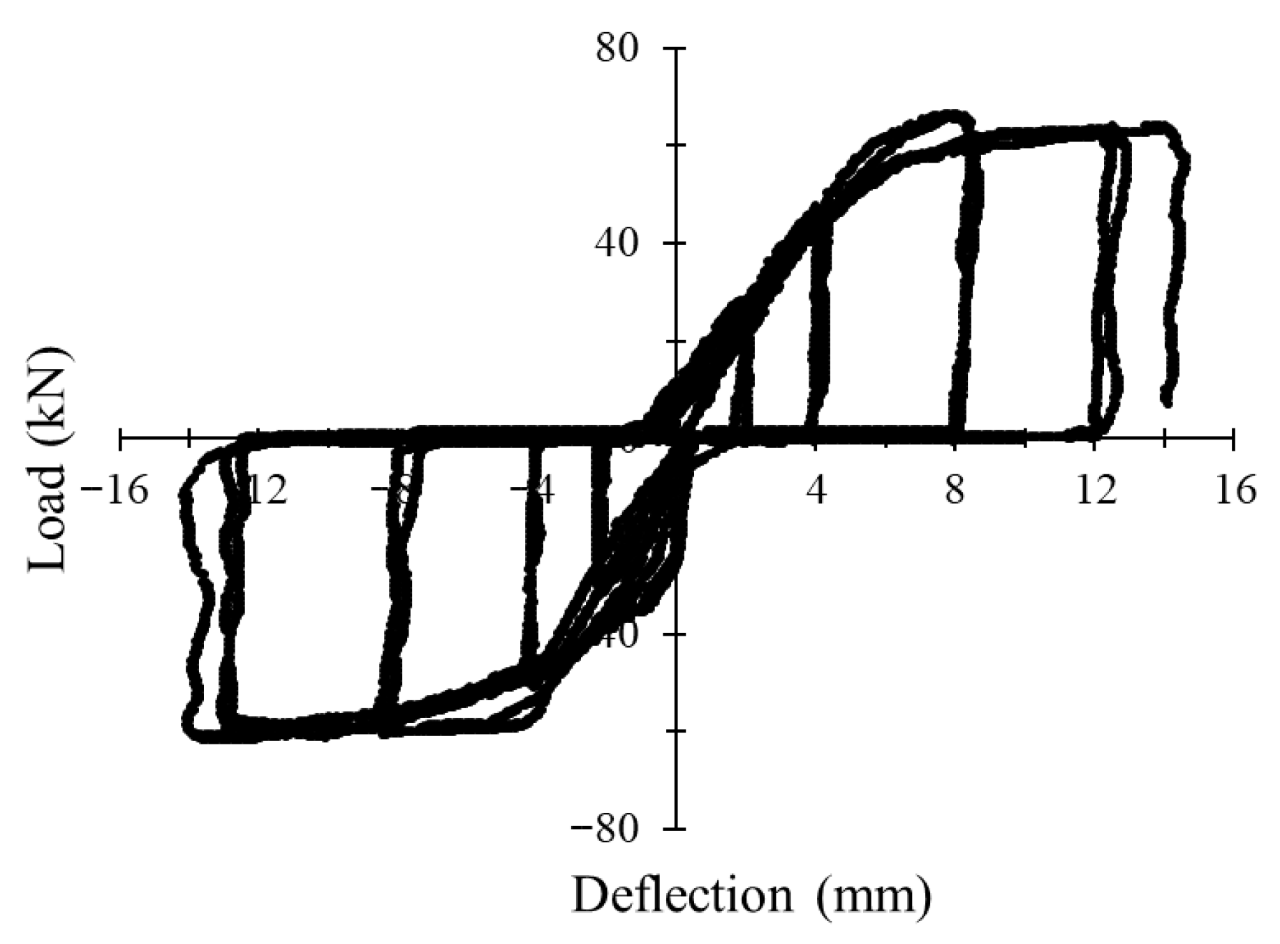 3.1. Load–Deflection Behavior Under Monotonic and Cyclic Loading