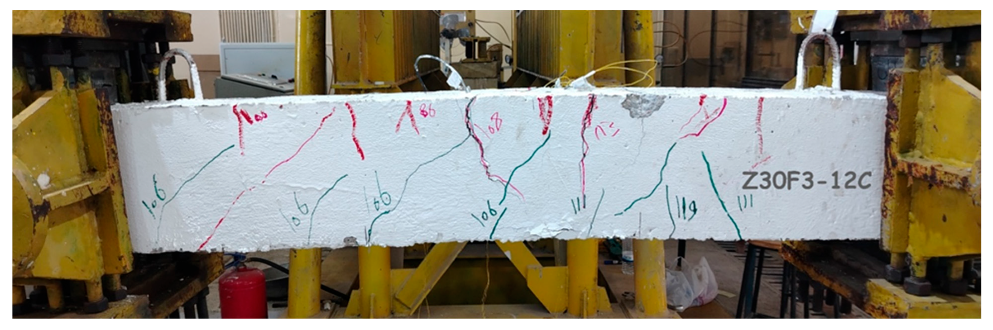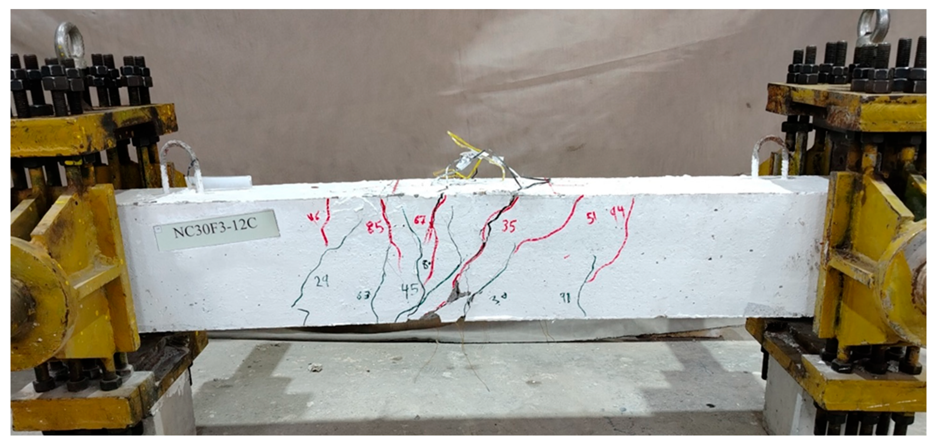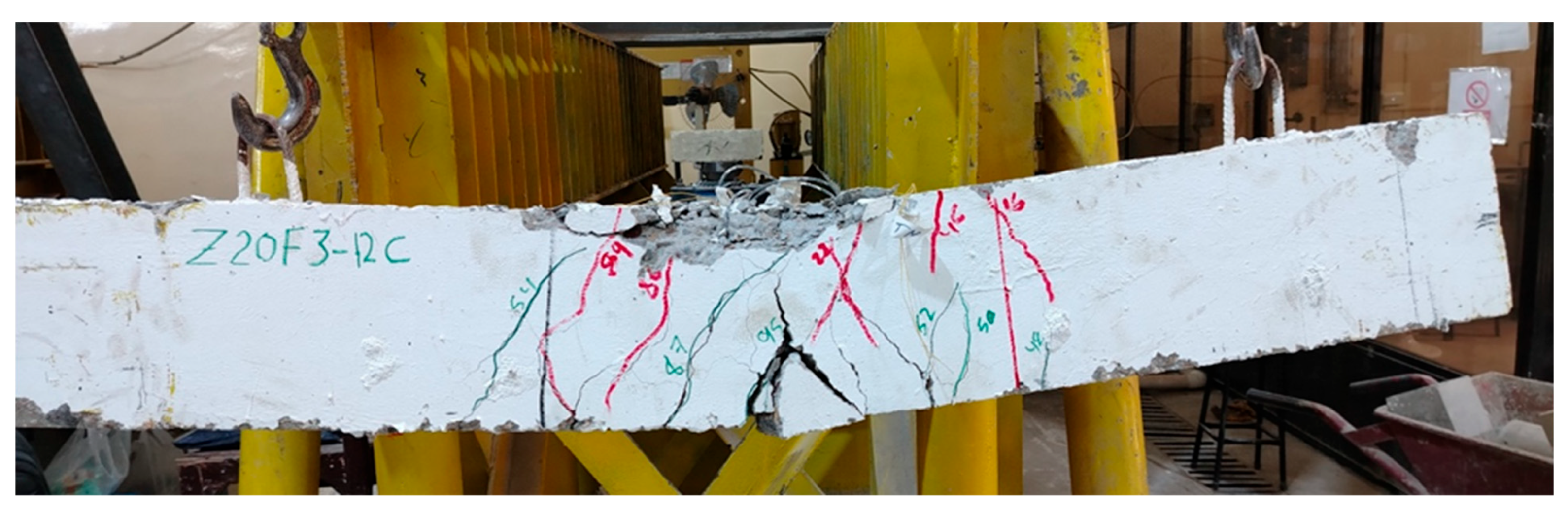 - ASTM C78/C78M-21; Standard Test Method for Flexural Strength of Concrete (Using Simple Beam with Third-Point Loading). ASTM International: West Conshohocken, PA, USA, 2021. [CrossRef]