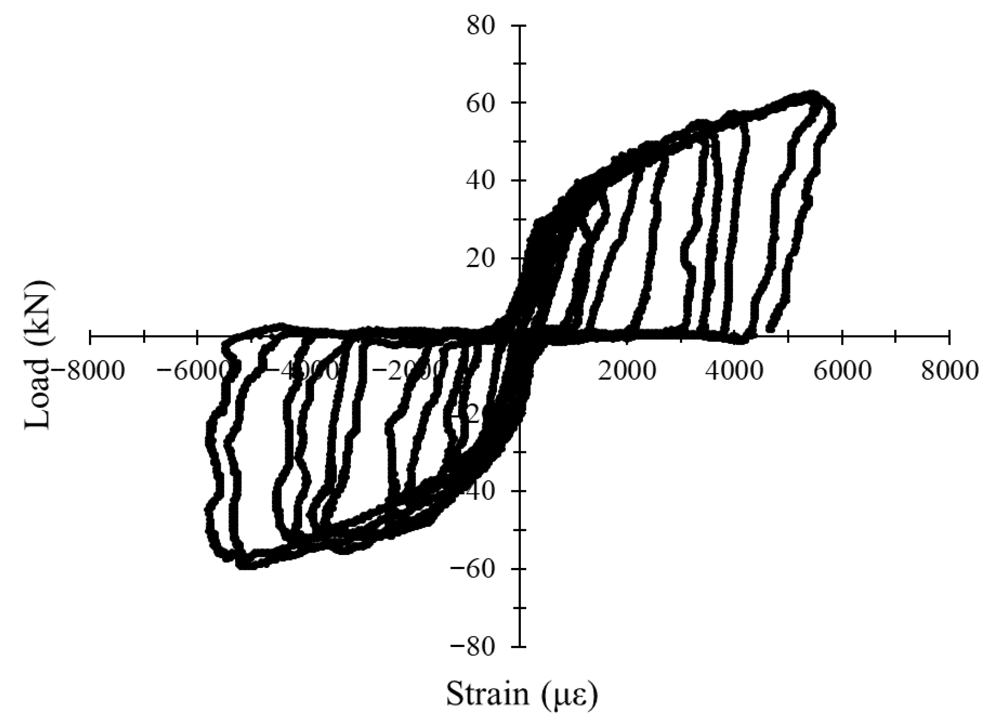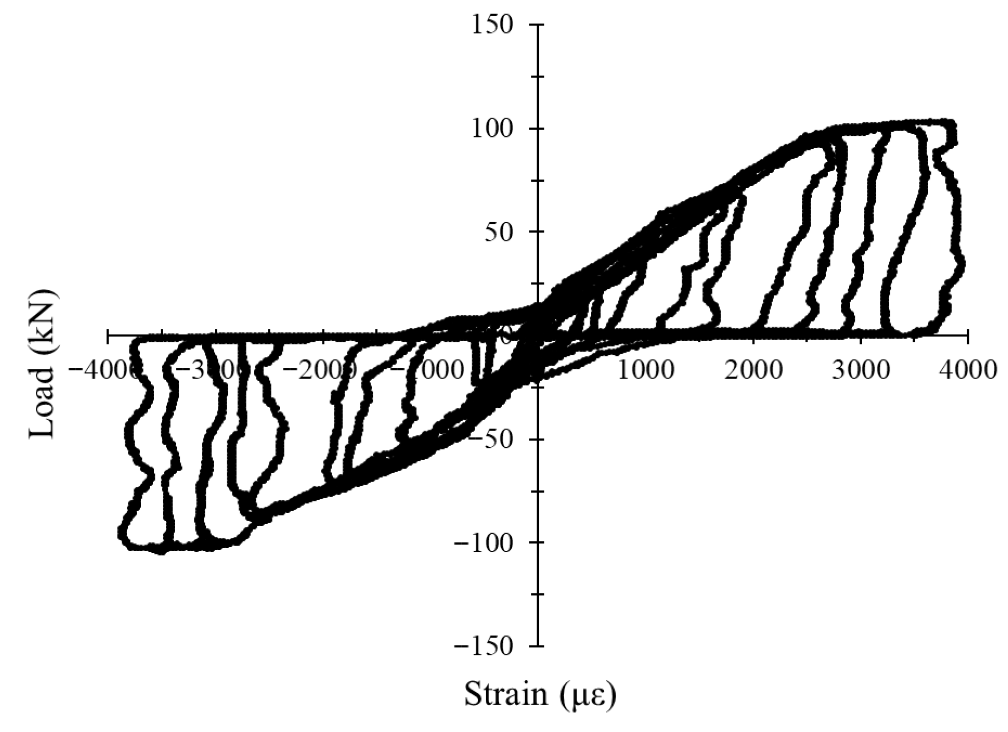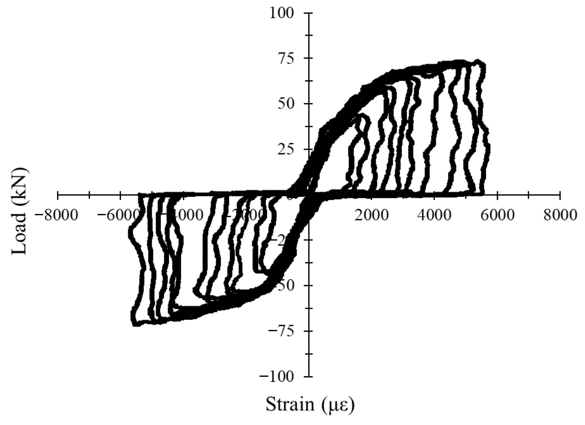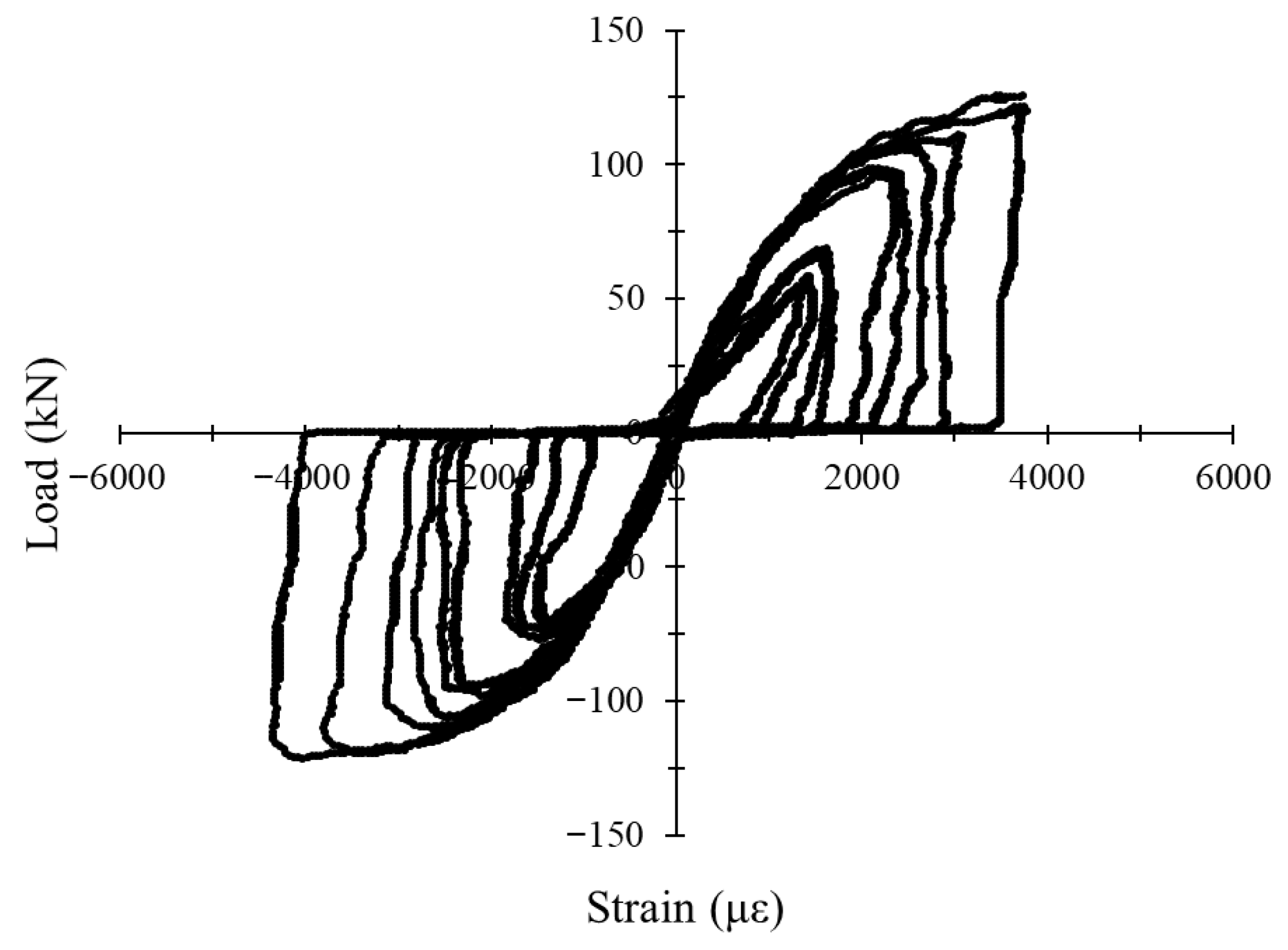 3.4.4. Load–Strain Hysteresis Response Under Cyclic Loading