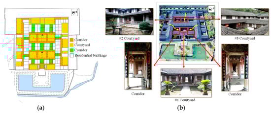 - Li, M.; Jin, Y.; Guo, J. Dynamic characteristics and adaptive design methods of enclosed courtyard: A case study of a single-story courtyard dwelling in China. Build. Environ. 2022, 223, 109445. [Google Scholar] [CrossRef]