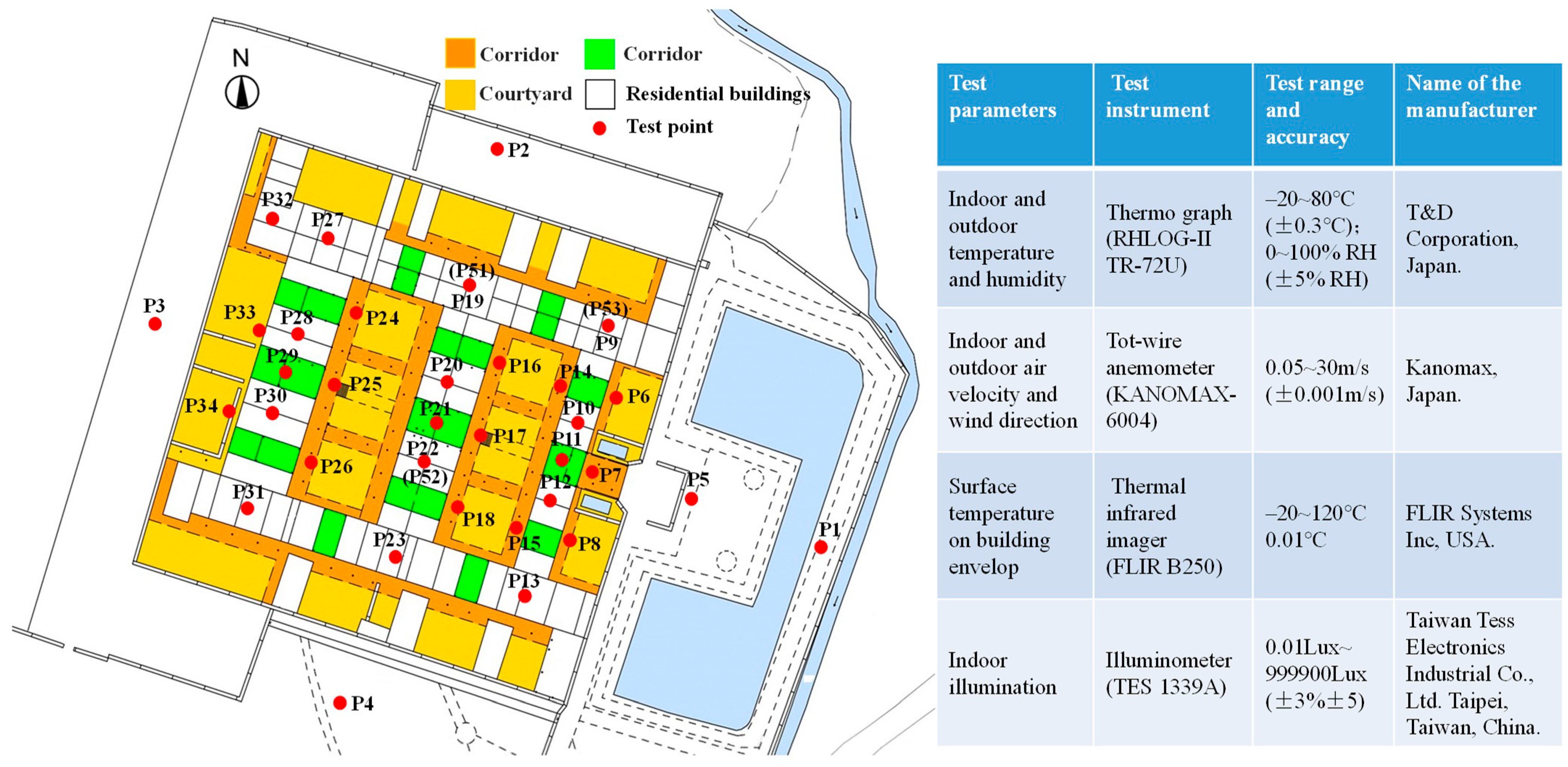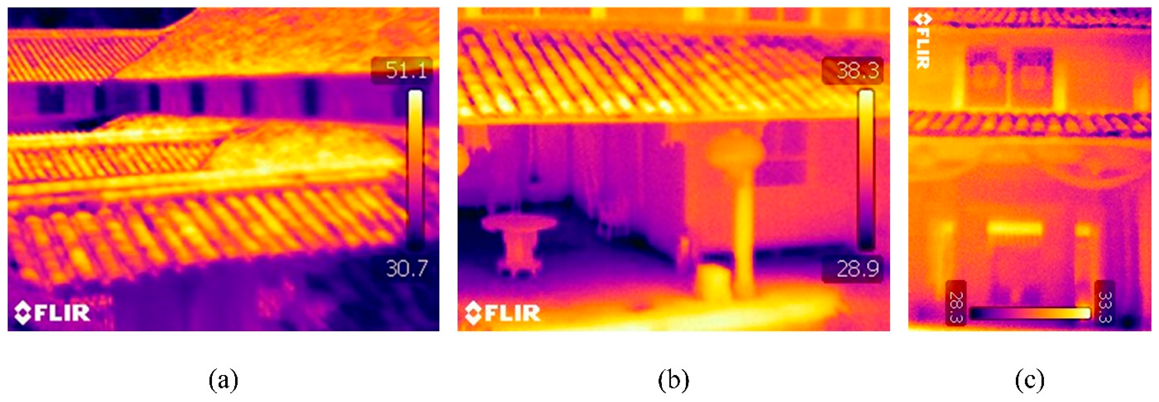 | Surface temperature of the building | FLIR B250 | 10 min | Direct measured | 0.1 °C | Teledyne FLIR LLC, Wilsonville, OR, USA |