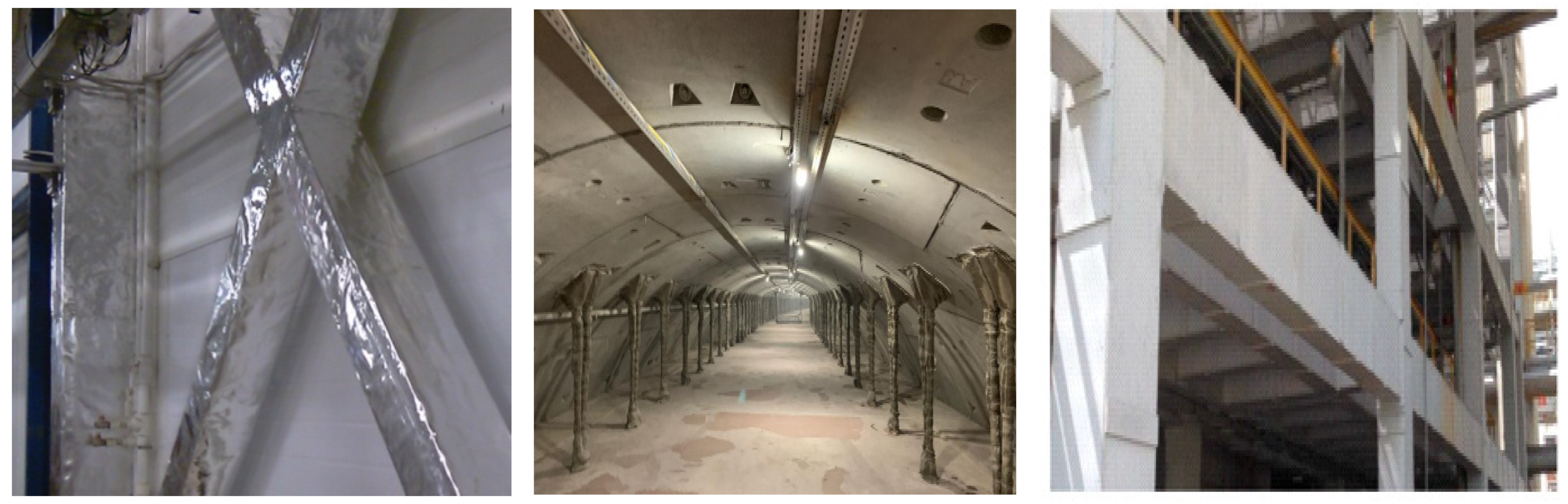 It is important to note that the use of structural fire protection significantly increases the cost of designing and constructing capital construction projects. To achieve the highest fire resistance ratings of structures, various types of structural fire protection are used. Mineral wool is widely applied in indoor environments, ceramic fiber linings are commonly used in tunnels, and cement boards, due to their good moisture resistance, are suitable for outdoor applications, such as overpasses and facilities in the oil and gas industry (Figure 1).