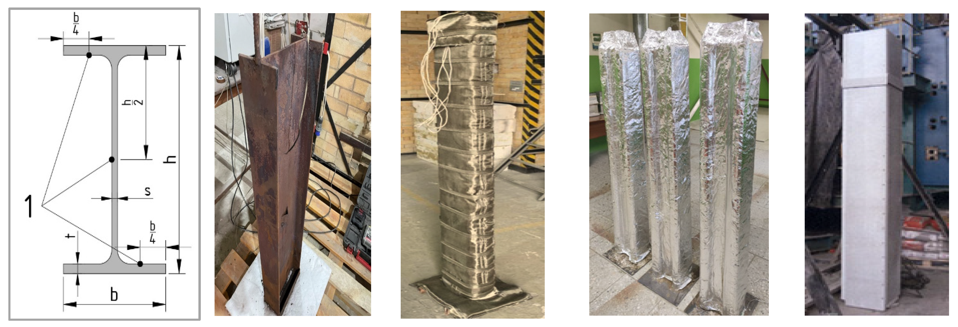 Fire protection properties are studied in a comparative setting relative to unprotected steel structures. For example, in [7], a volume factor is used for a 1.7 m high steel structure coated with fire protection and subjected to a temperature of 500 °C. Several such structures are considered in standards [10], and fire protection is also studied in a comparative context with other types of fire protection and with unprotected structures [11].