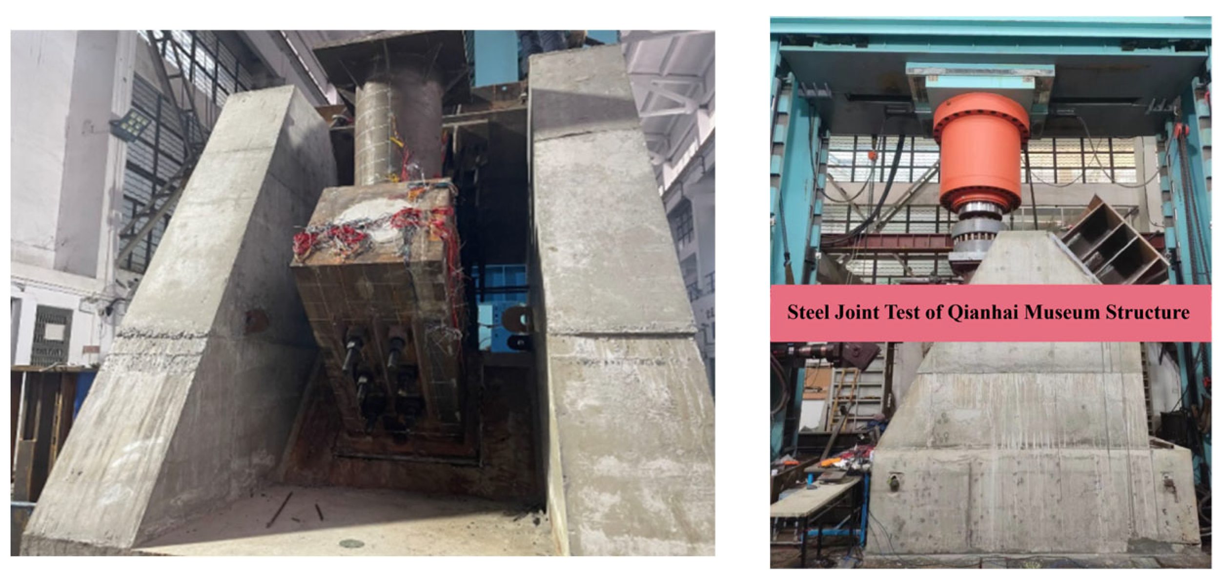 - Zhong, Z.; Peng, P.; Zhu, Z.; Ao, X.; Xiong, S.; Huang, J.; Zhou, L.; Bai, X. Axial tensile experiment of the lap-type asymmetric k-shaped square tubular joints with built-in stiffeners. Buildings 2025, 15, 1634. [Google Scholar] [CrossRef]