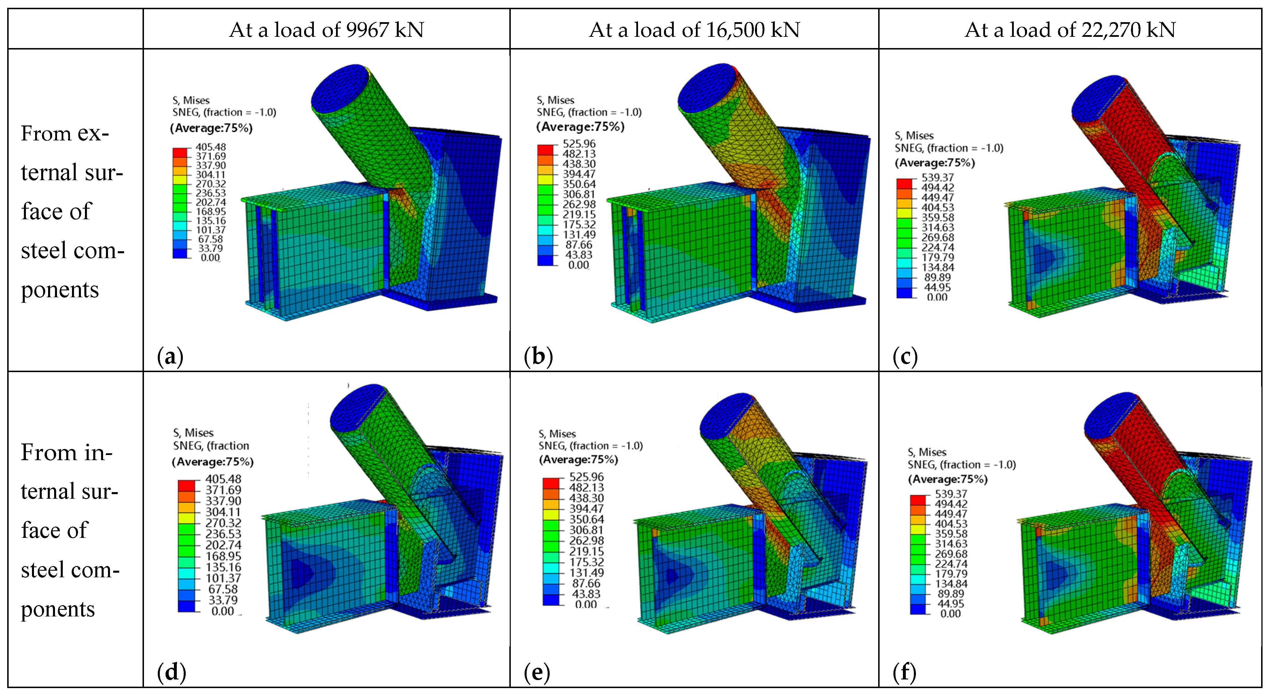 - The wall thickness of the circular arch beam steel tube is the key parameter controlling the bearing capacity of this joint. Gradually increasing the wall thickness of the arch beam’s steel tube shifts the failure mode from arch-beam-dominated yielding to tie-beam-dominated yielding along the junction region. Increasing the steel strength grade is more efficient in enhancing the bearing capacity than increasing the concrete strength grade.