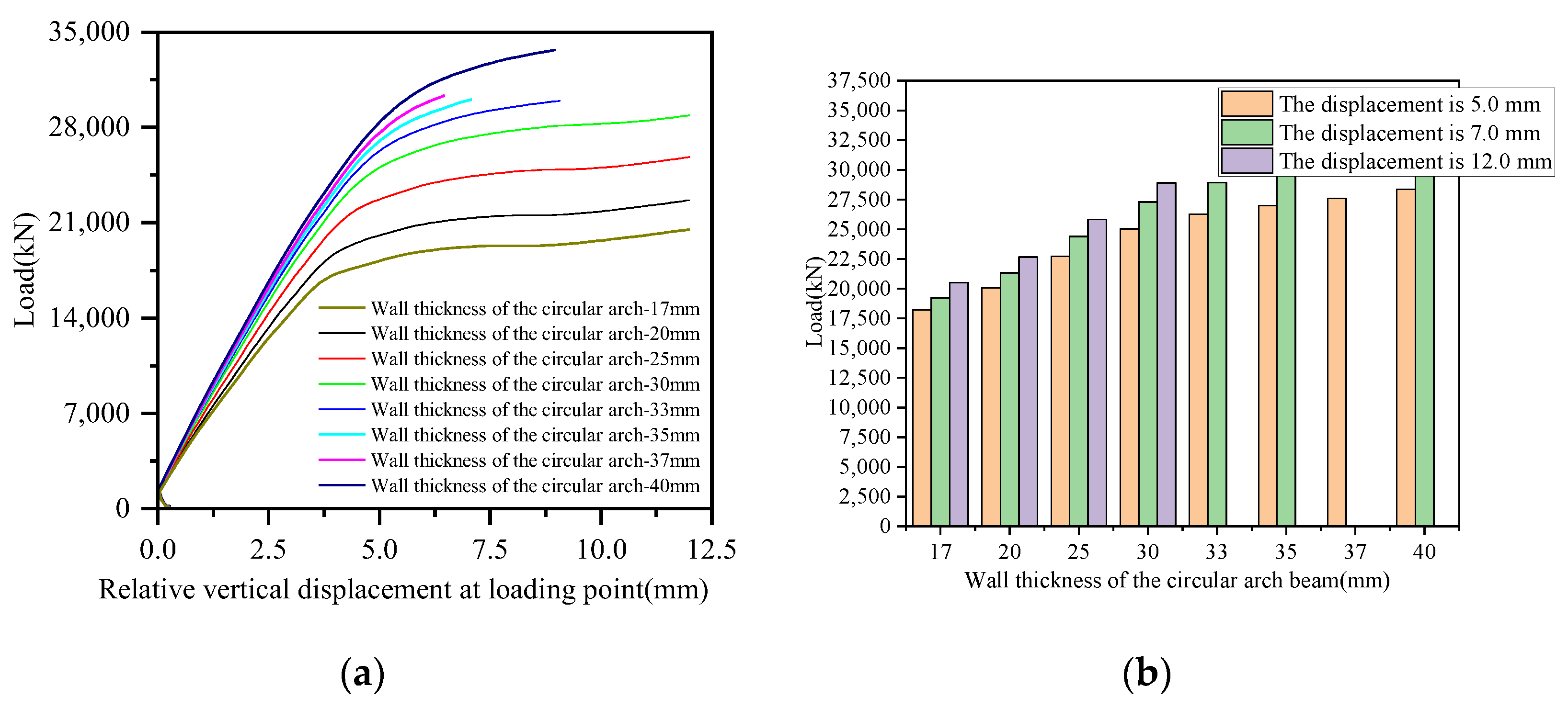 - The end of the circular arch beam was free, and axial compression was applied at this location.
