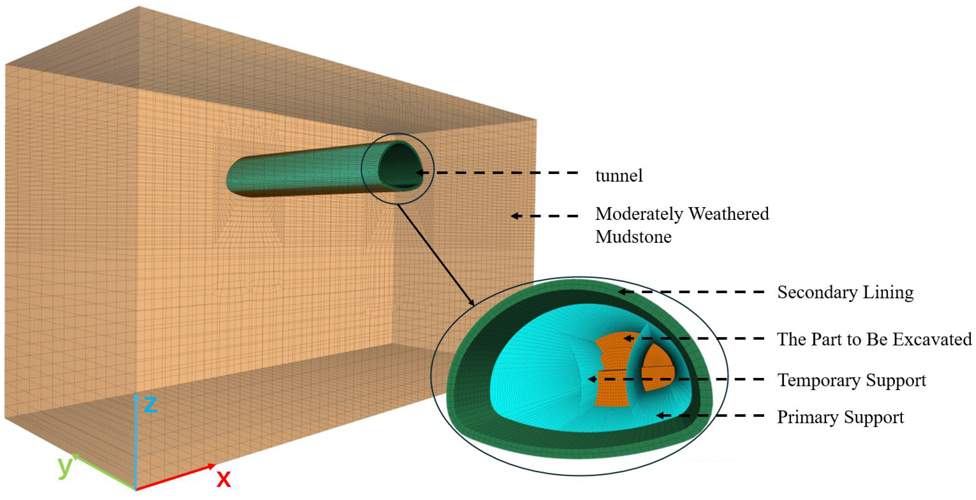 2.2.2. Tunnel Construction Methods and Sequences