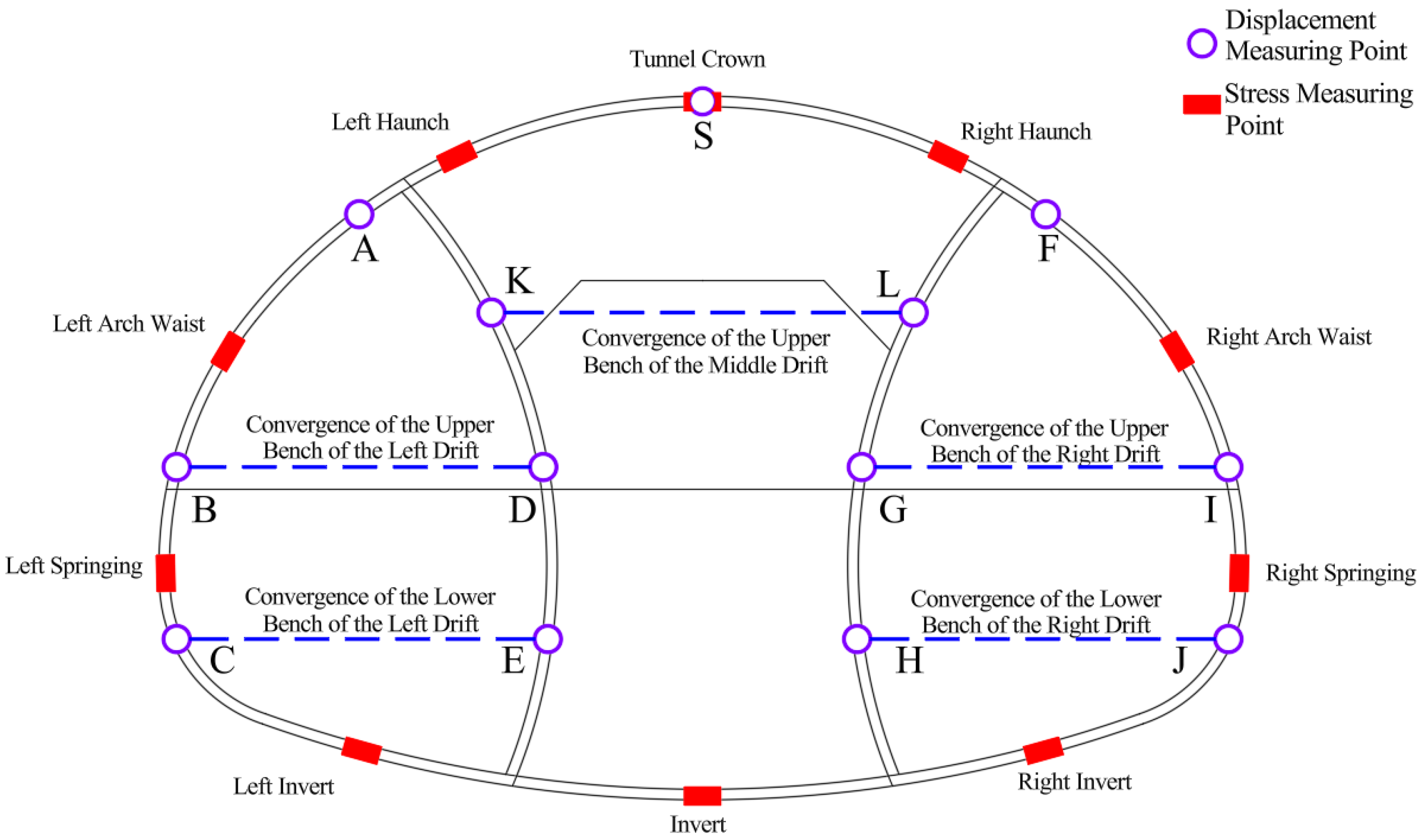 - Ma, L.; Dai, J.; Wang, B.; Mo, Y.; Liu, Y.; Tian, C. Structural Analysis of Large-Span Tunnel Excavated by Upper Bench Center Diaphragm Method: An Analytical Model and Its Application. Tunn. Undergr. Space Technol. 2026, 167, 107053. [Google Scholar]
