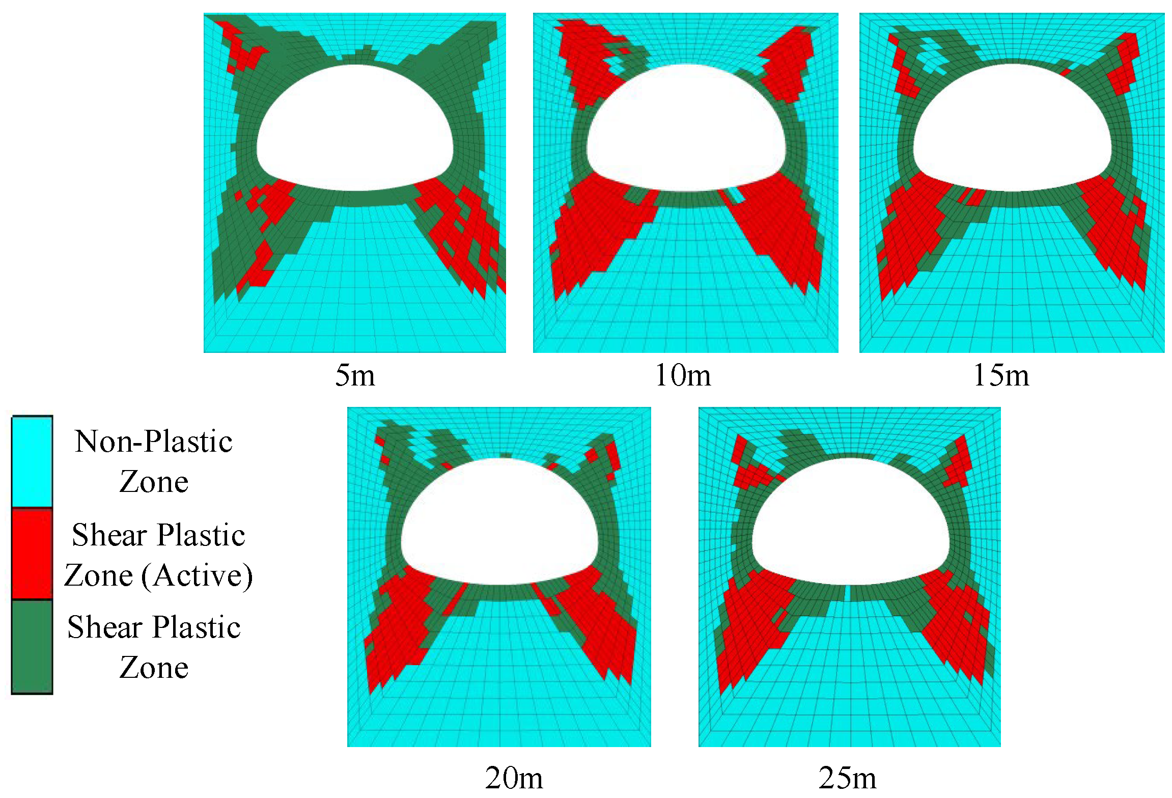 4.2.3. Development of Plastic Zone