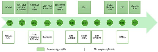 Timeline of the development of selected digital maturity assessment tools.