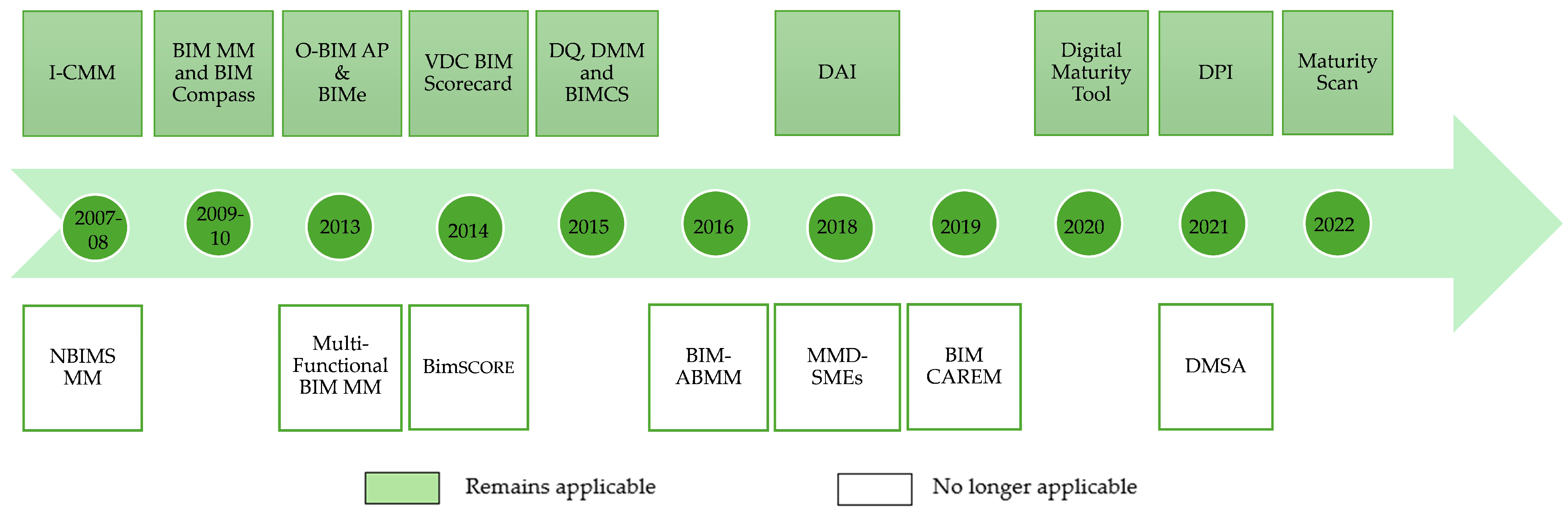 - General digital readiness or IT governance models with no clear application to AEC or BIM.