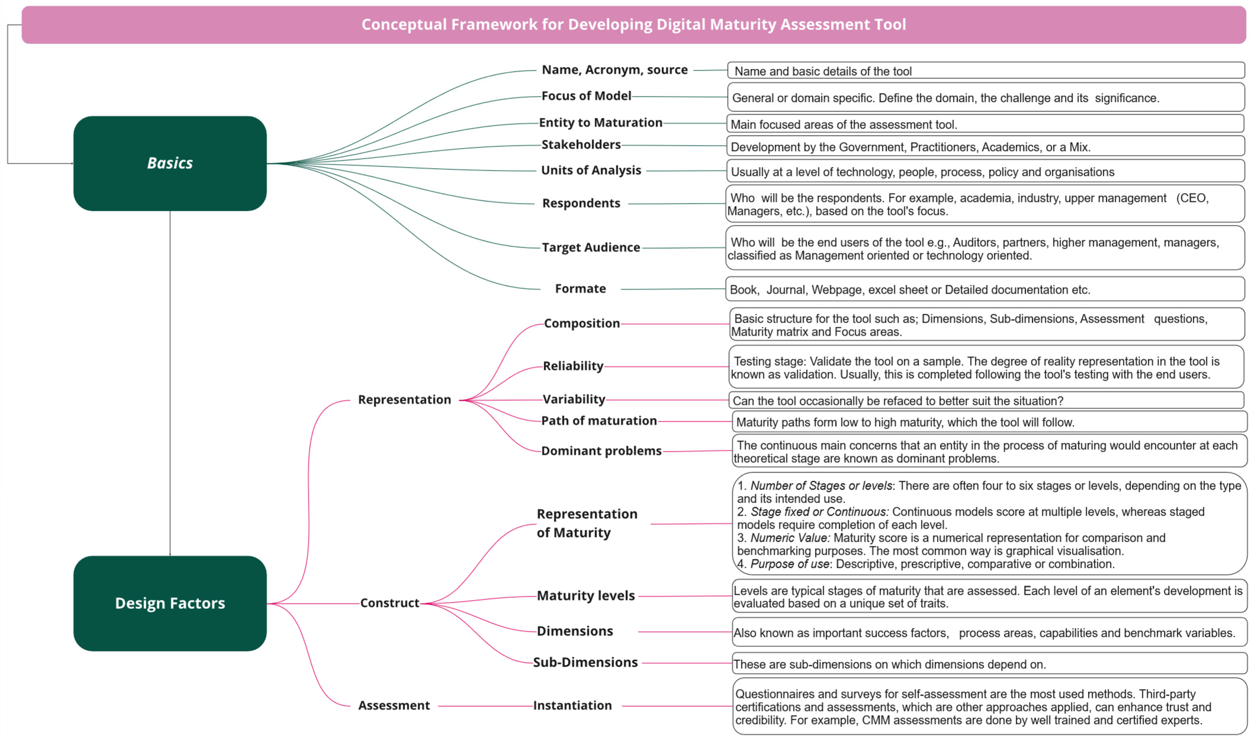 - Integrating key components such as maturity assessment levels, dimensions, sub dimensions, and a path to maturity.
