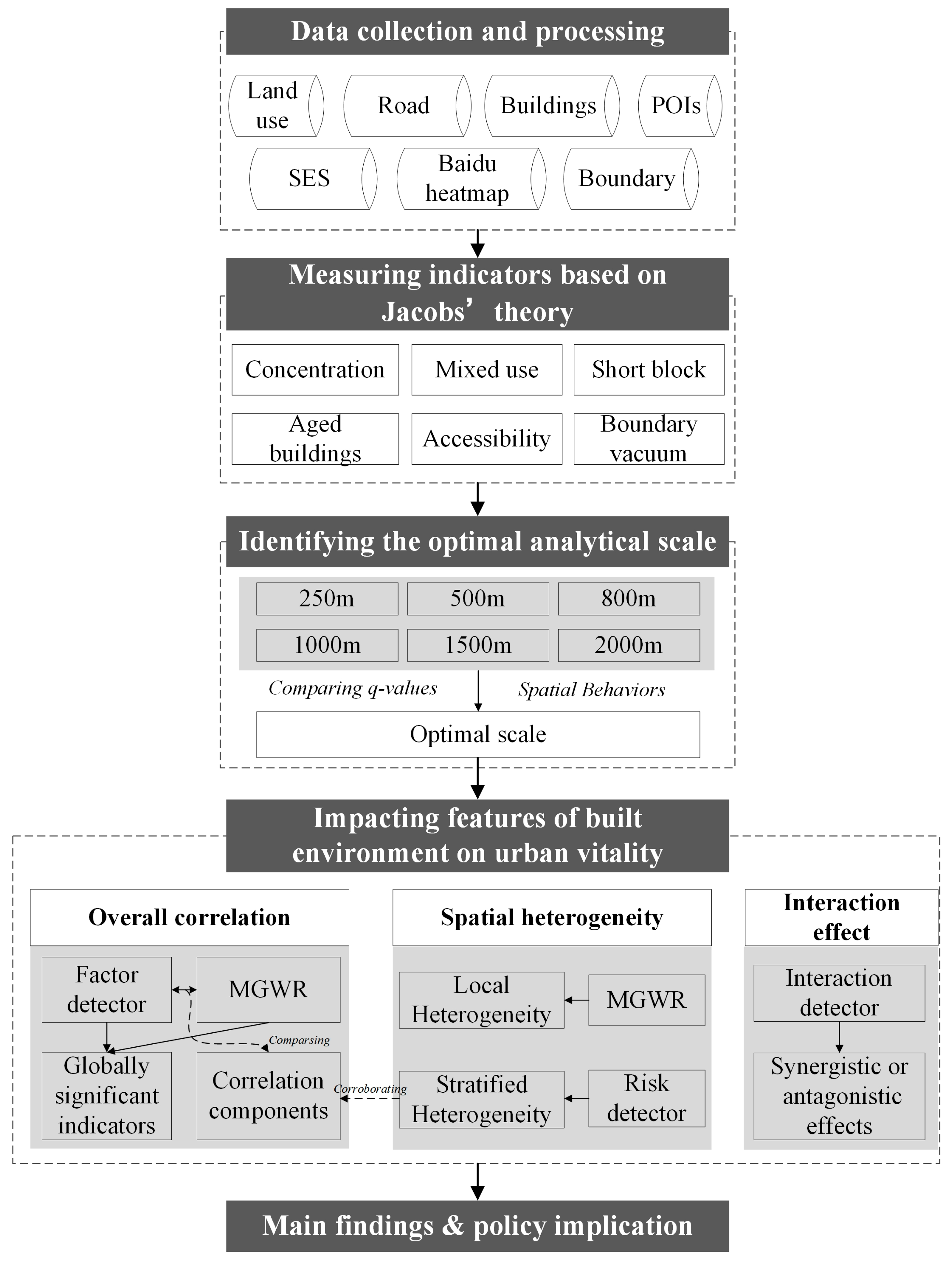APA StyleJiang, X., Tian, J., Li, J., Ye, D., Lan, W., Wu, D., Tian, N., & Yin, J. (2026). Unraveling the Impact Mechanisms of Built Environment on Urban Vitality: Integrating Scale, Heterogeneity, and Interaction Effects. Buildings, 16(1), 29. https://doi.org/10.3390/buildings16010029