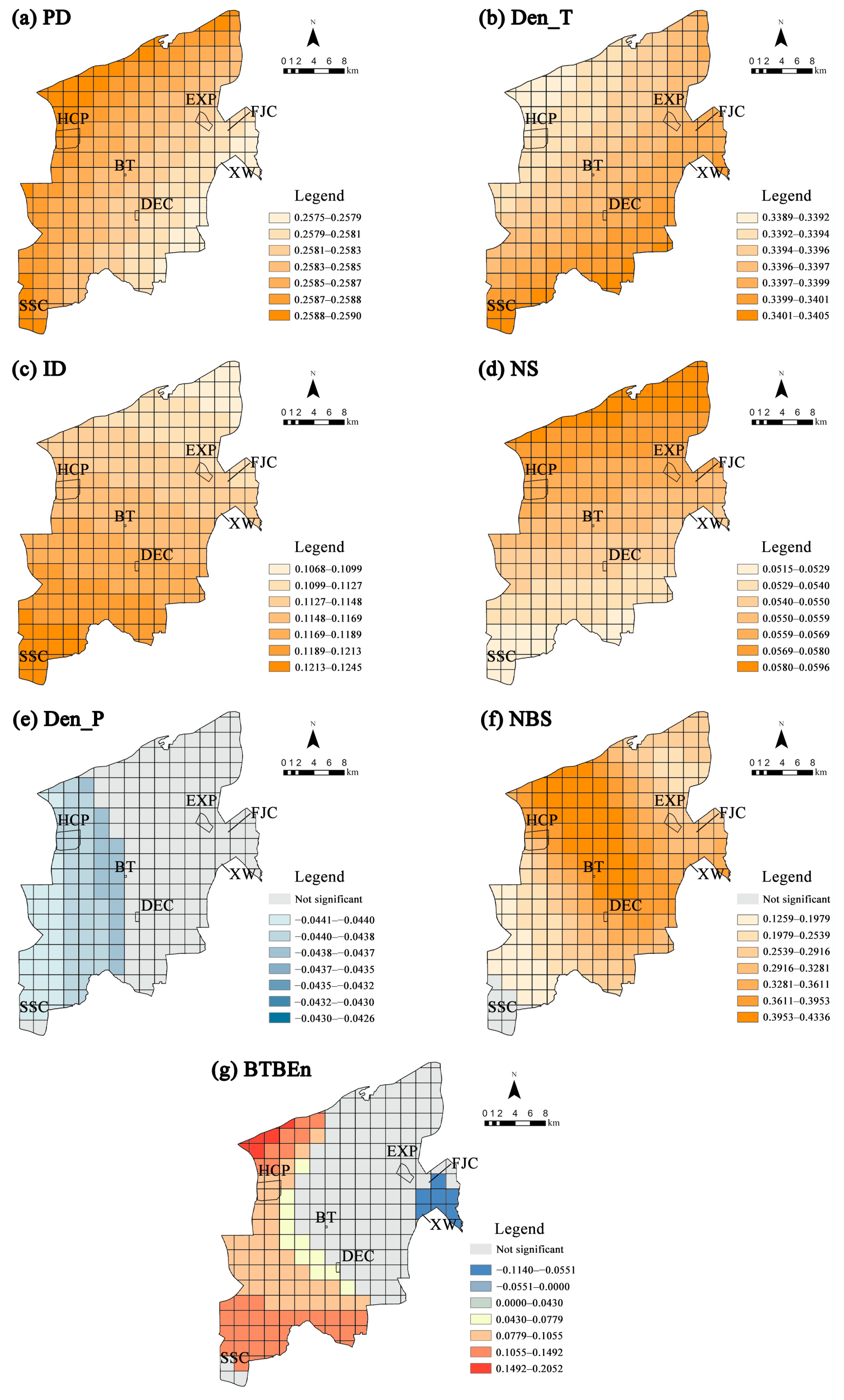 - Aged buildings and their composite features (ABA, BAD and EDBA). Historic buildings often possess a unique charm, serving as crucial material embodiments of local character [81]. The integration of new and old buildings, a core prerequisite for organic urban regeneration, has also been shown to significantly enhance urban vitality [82,83]. However, when the average building age of an area becomes excessively high, it often signifies widespread issues, such as functional obsolescence, deteriorated facilities, and an inability to accommodate contemporary business models [84].