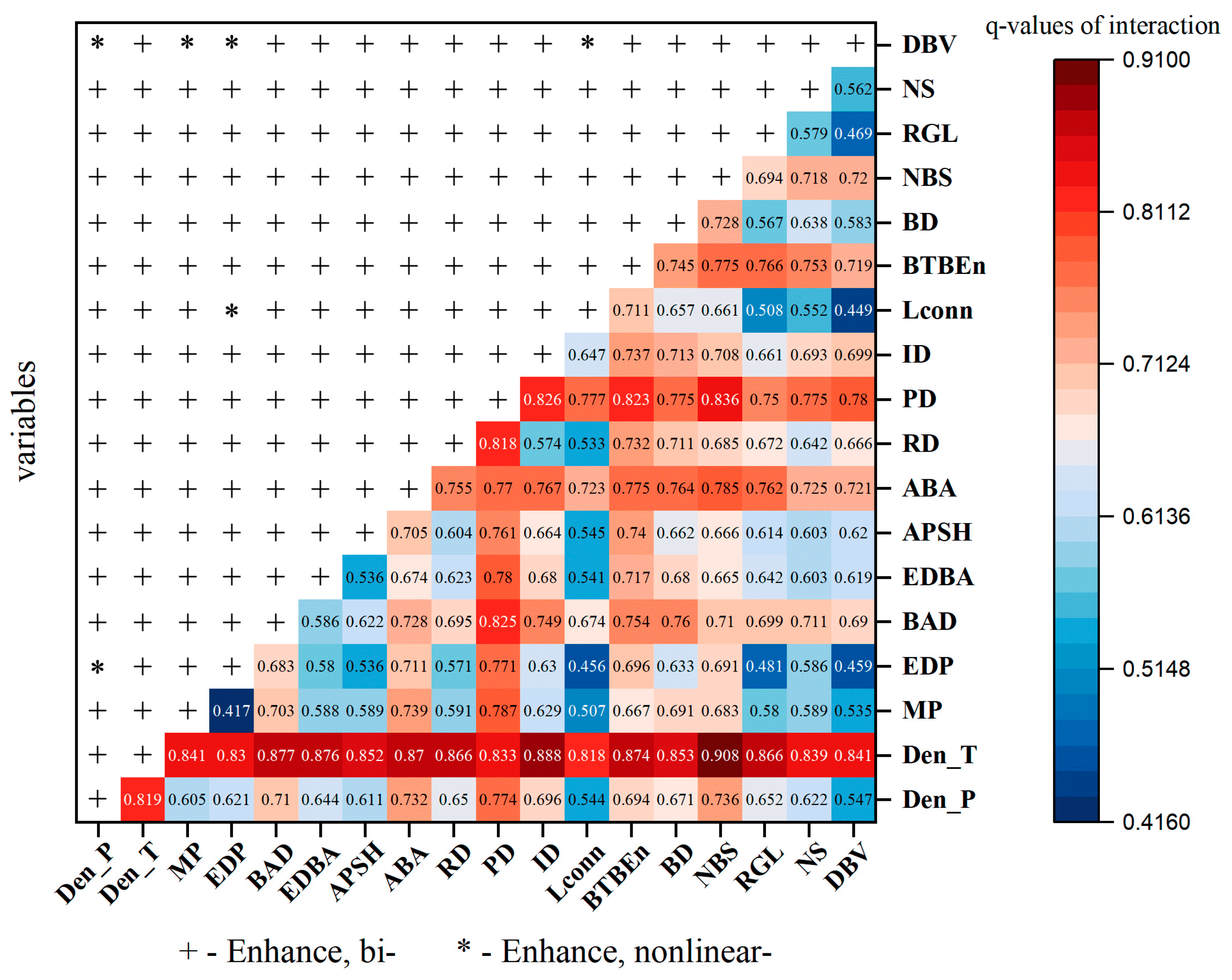 5.4. Interactive Impact of Built Environment Factors on Vitality