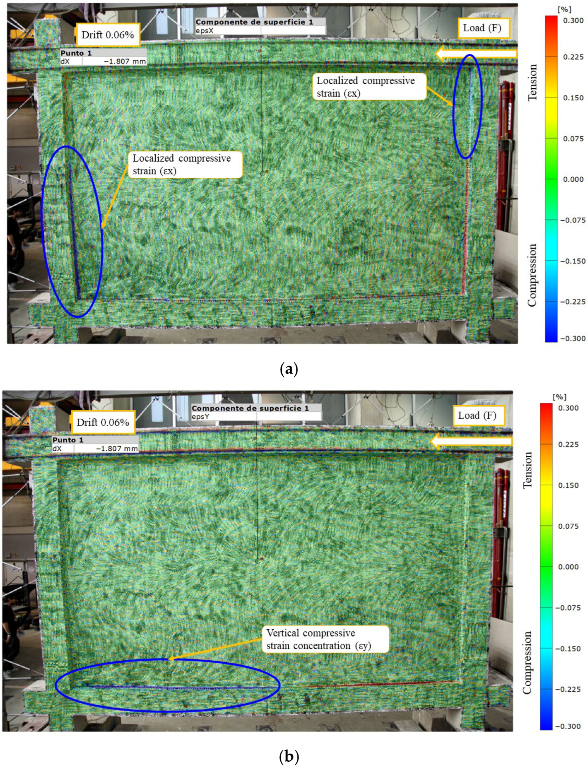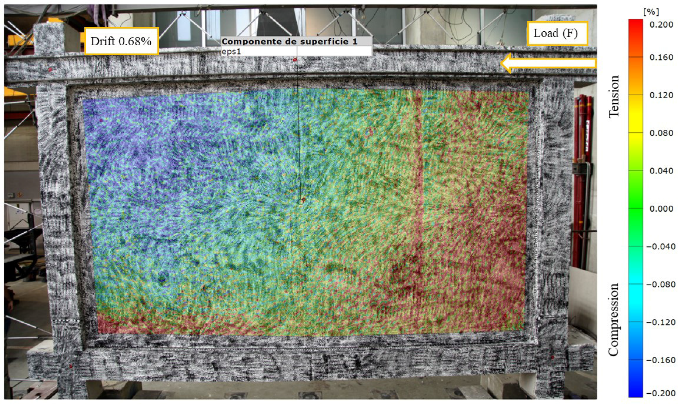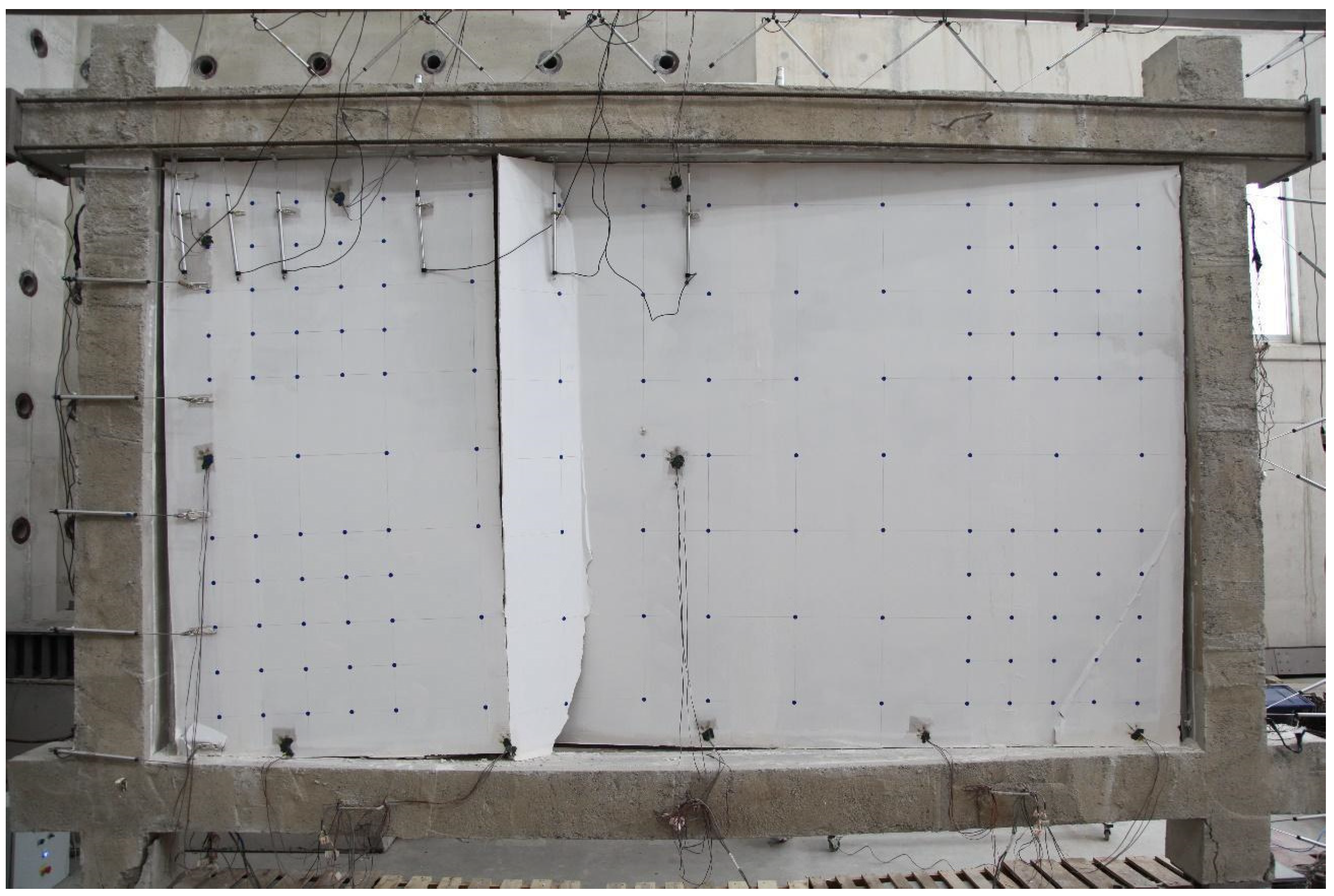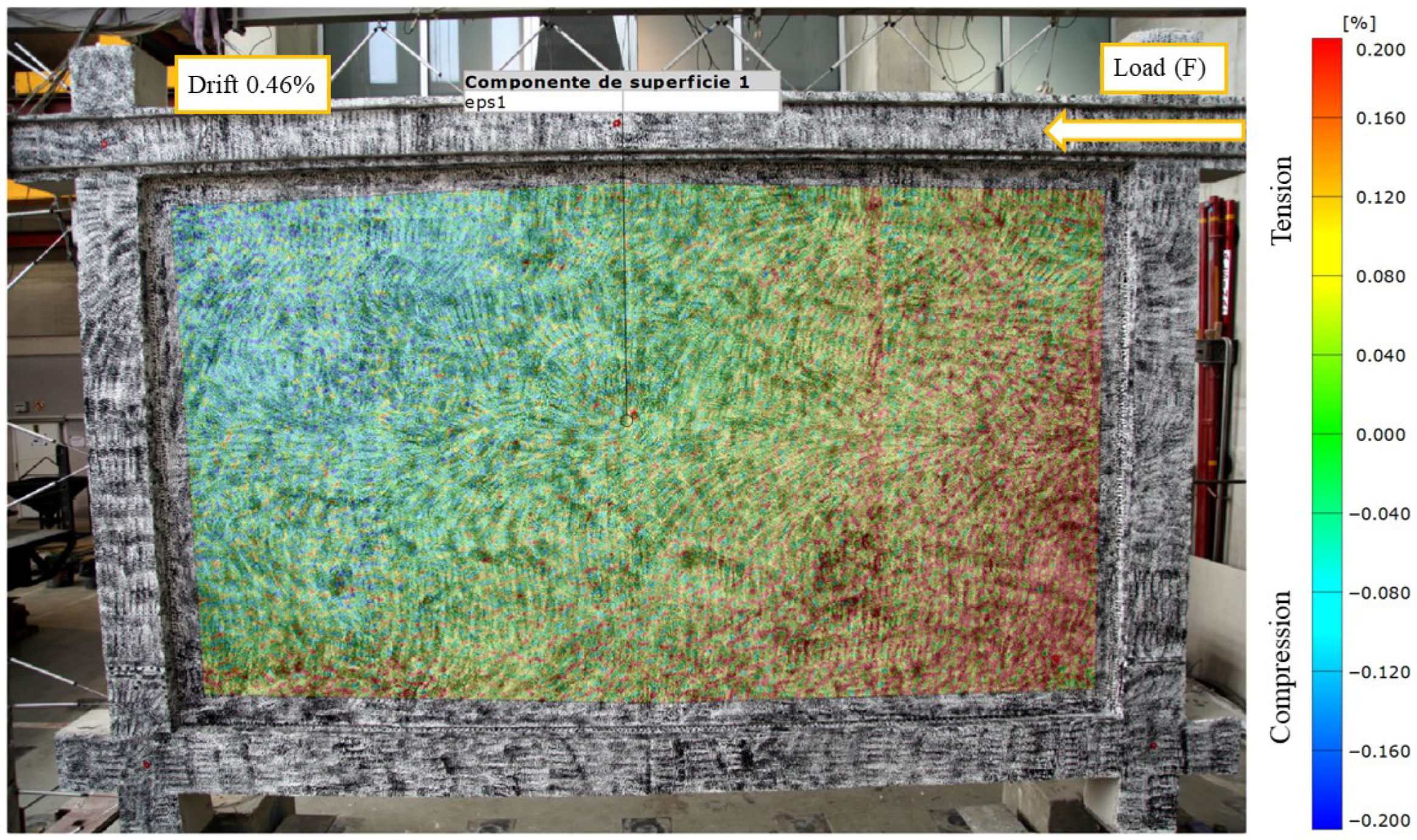 - Finally, the instrumentation setup was primarily designed to capture the in-plane global response (stiffness, strength, and drift). While the failure mechanism of the drywall involved out-of-plane buckling and tearing—inherently 3D phenomena—these were monitored visually and correlated with the in-plane force drop.