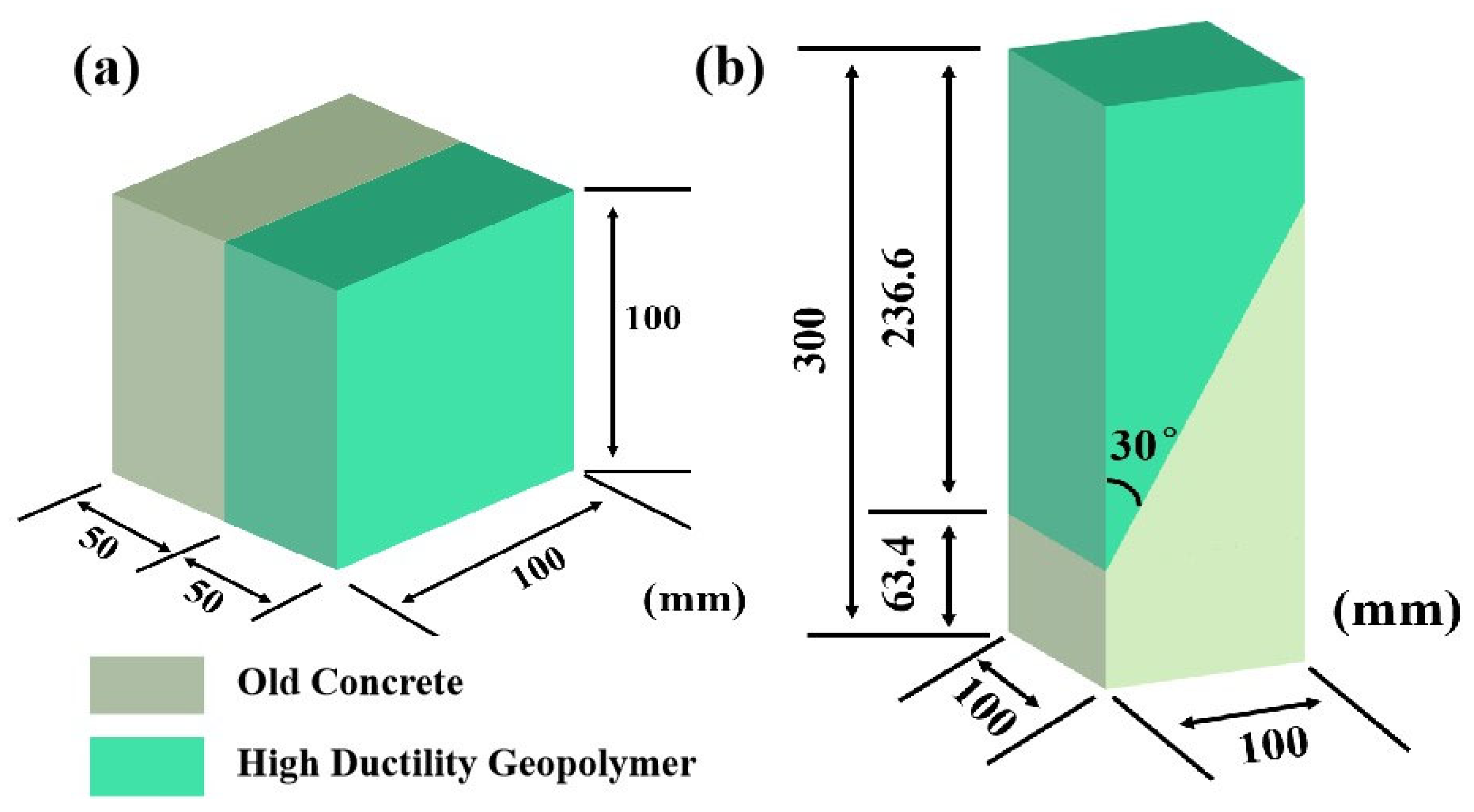 - Wang, B.; Feng, H.; Huang, H.; Guo, A.; Zheng, Y.; Wang, Y. Bonding Properties between Fly Ash/Slag-Based Engineering Geopolymer Composites and Concrete. Materials 2023, 16, 4232. [Google Scholar] [CrossRef] [PubMed]