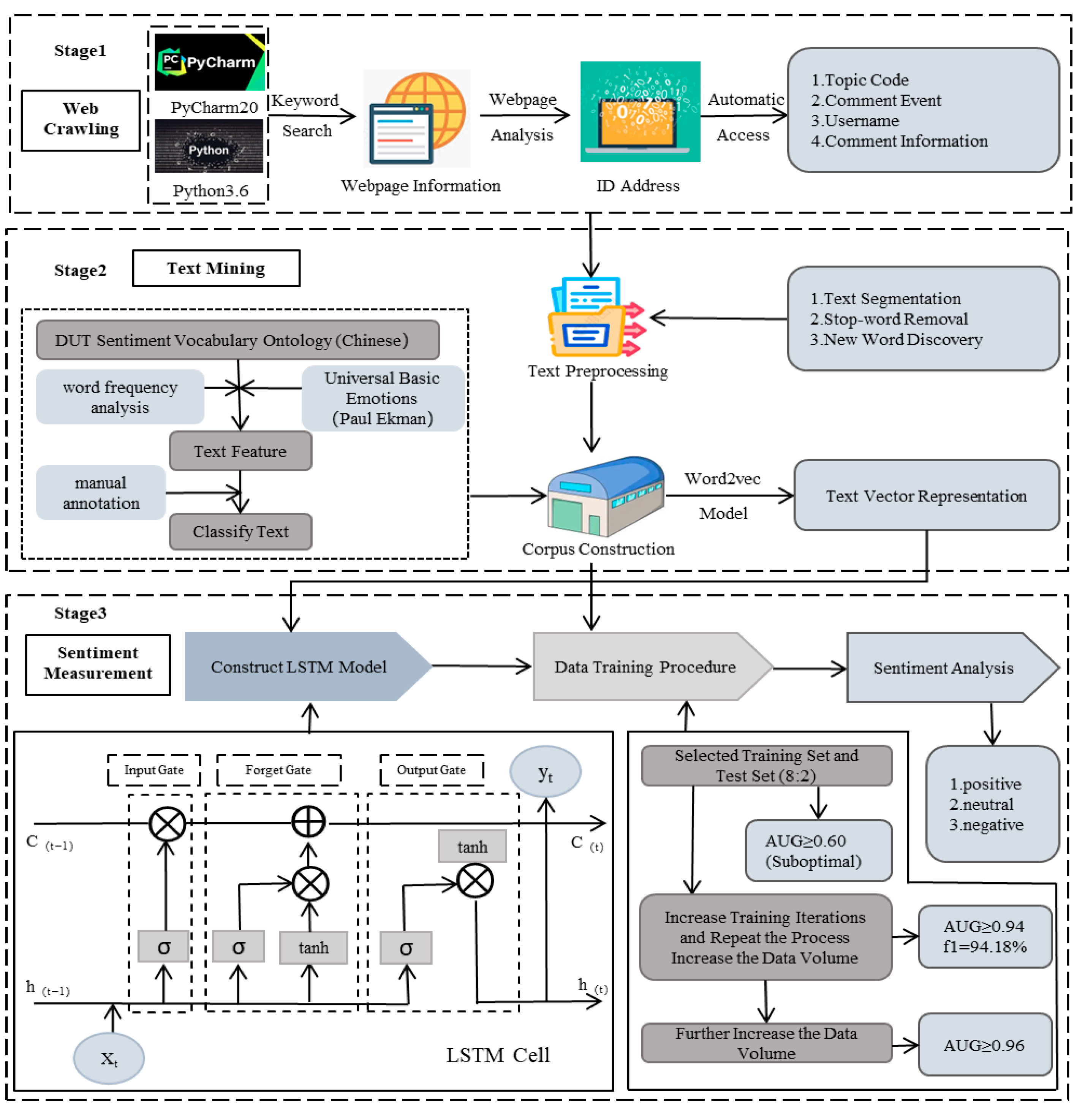 Figure 1, the methodology of this study is divided into three stages: web crawling, text mining and sentiment measurement.