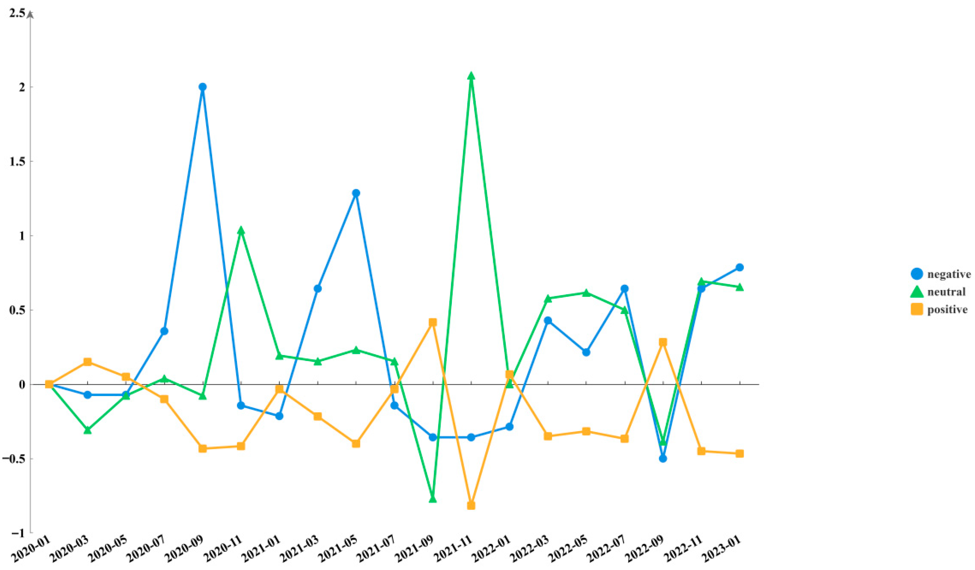 43]. Additionally, due to the relatively stable epidemic situation nationwide during this period, the negative emotions of the public did not increase significantly [