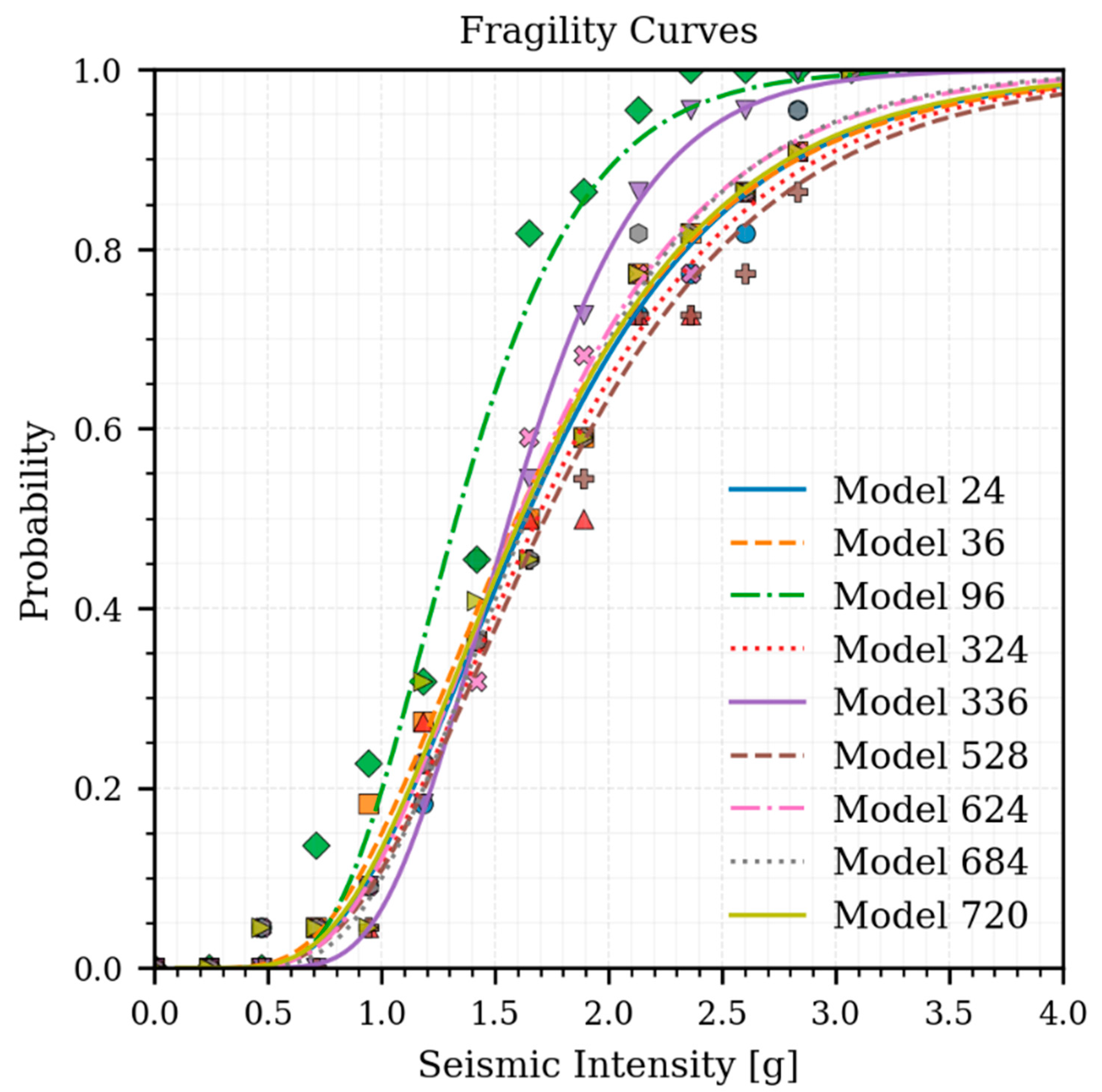 2.5.1. Nonlinear Dynamic Analysis and Collapse Intensity