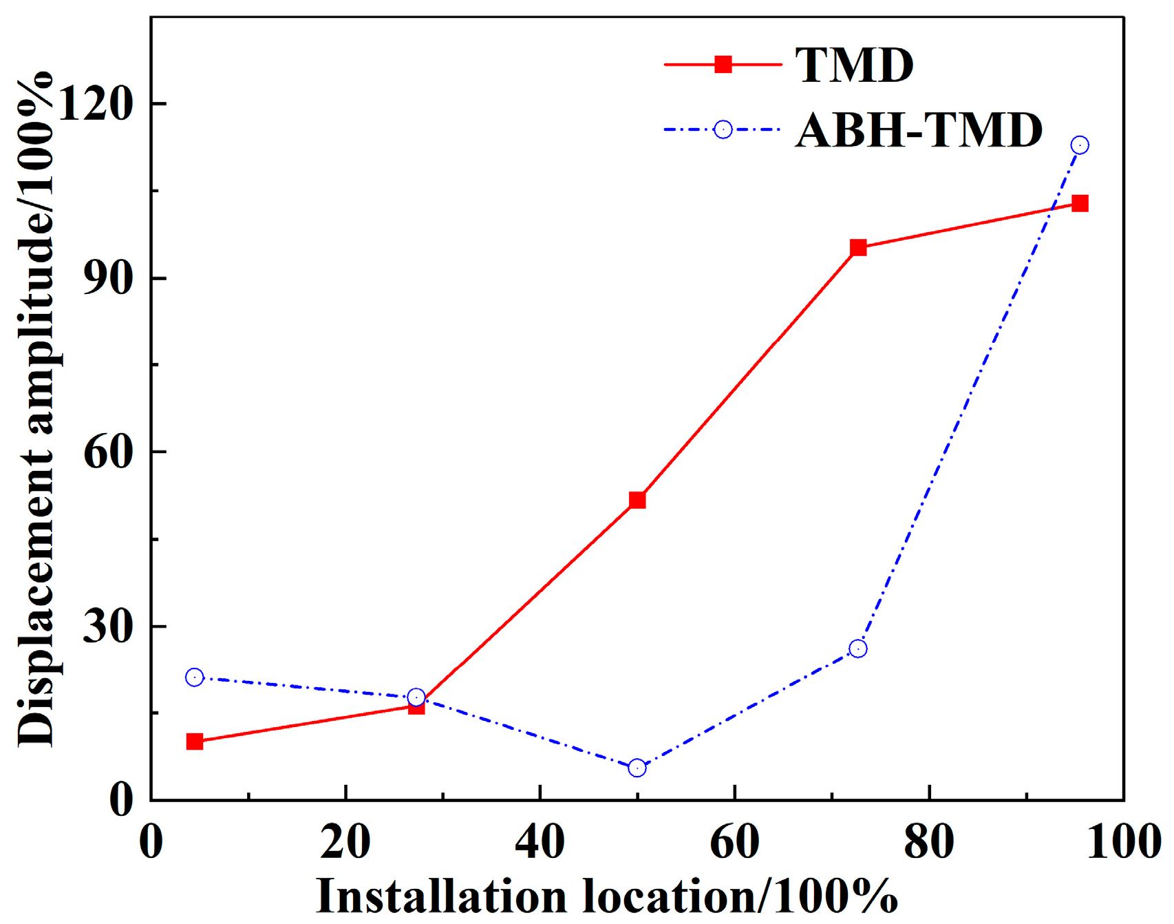 2, while under ABH-TMD control, they occurred at 0.1686 m/s