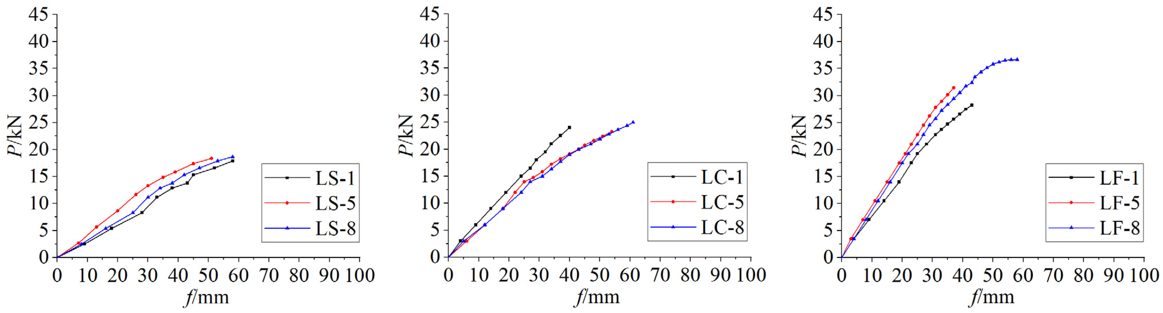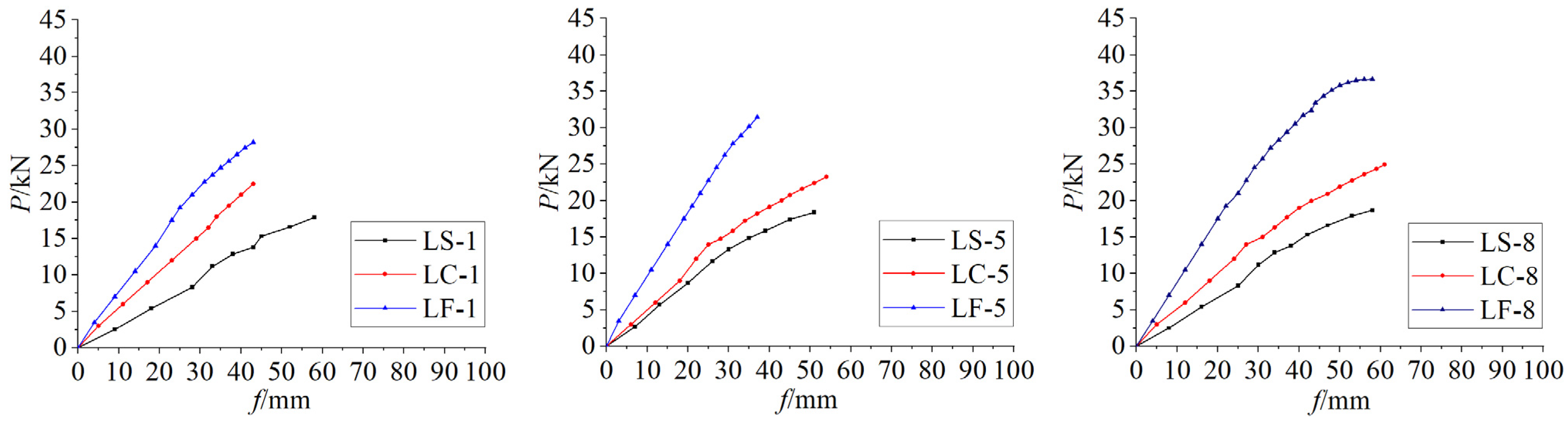 3.3.1. Comparison of Curves of Specimens with Different Cross-Sectional Heights