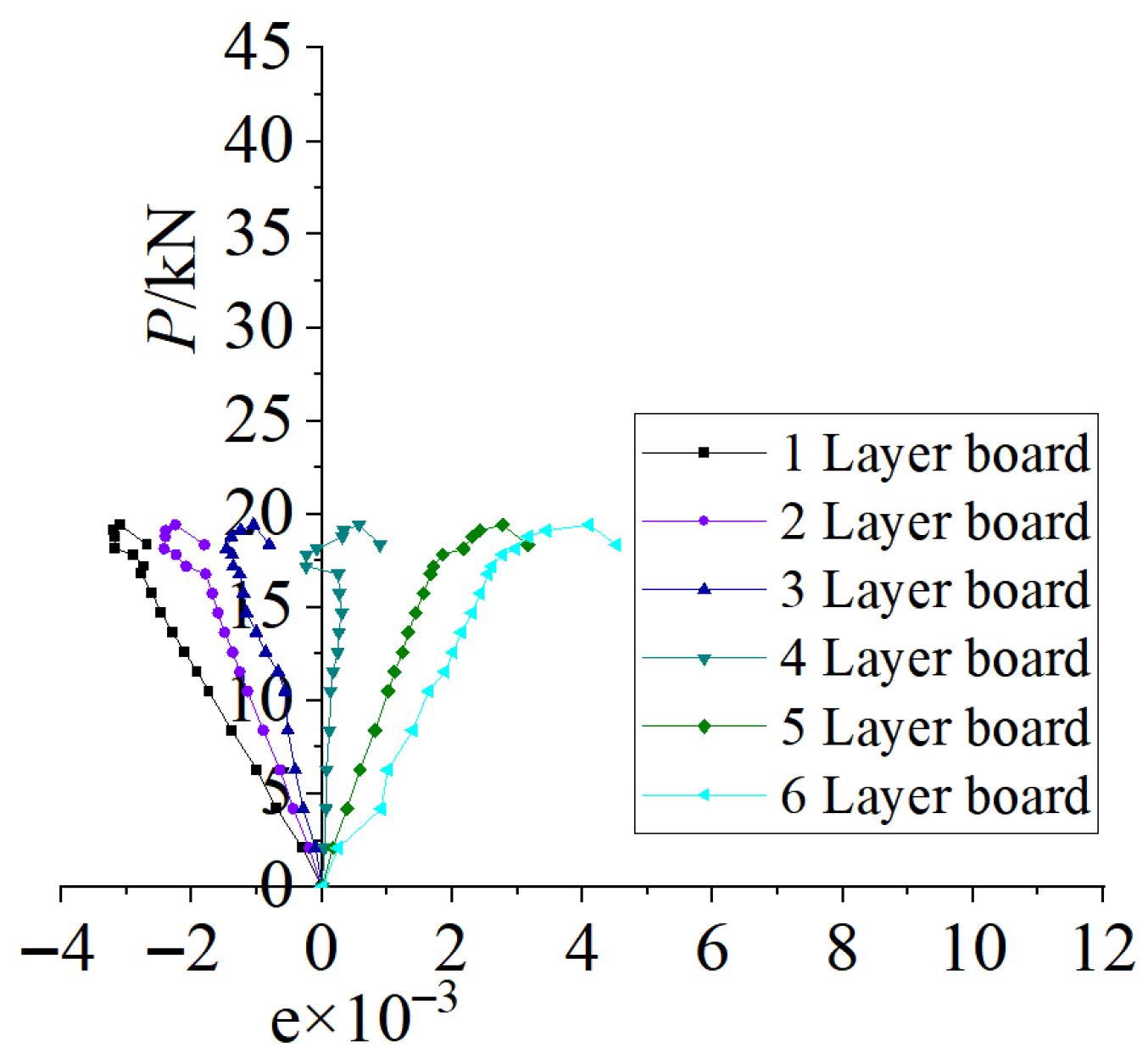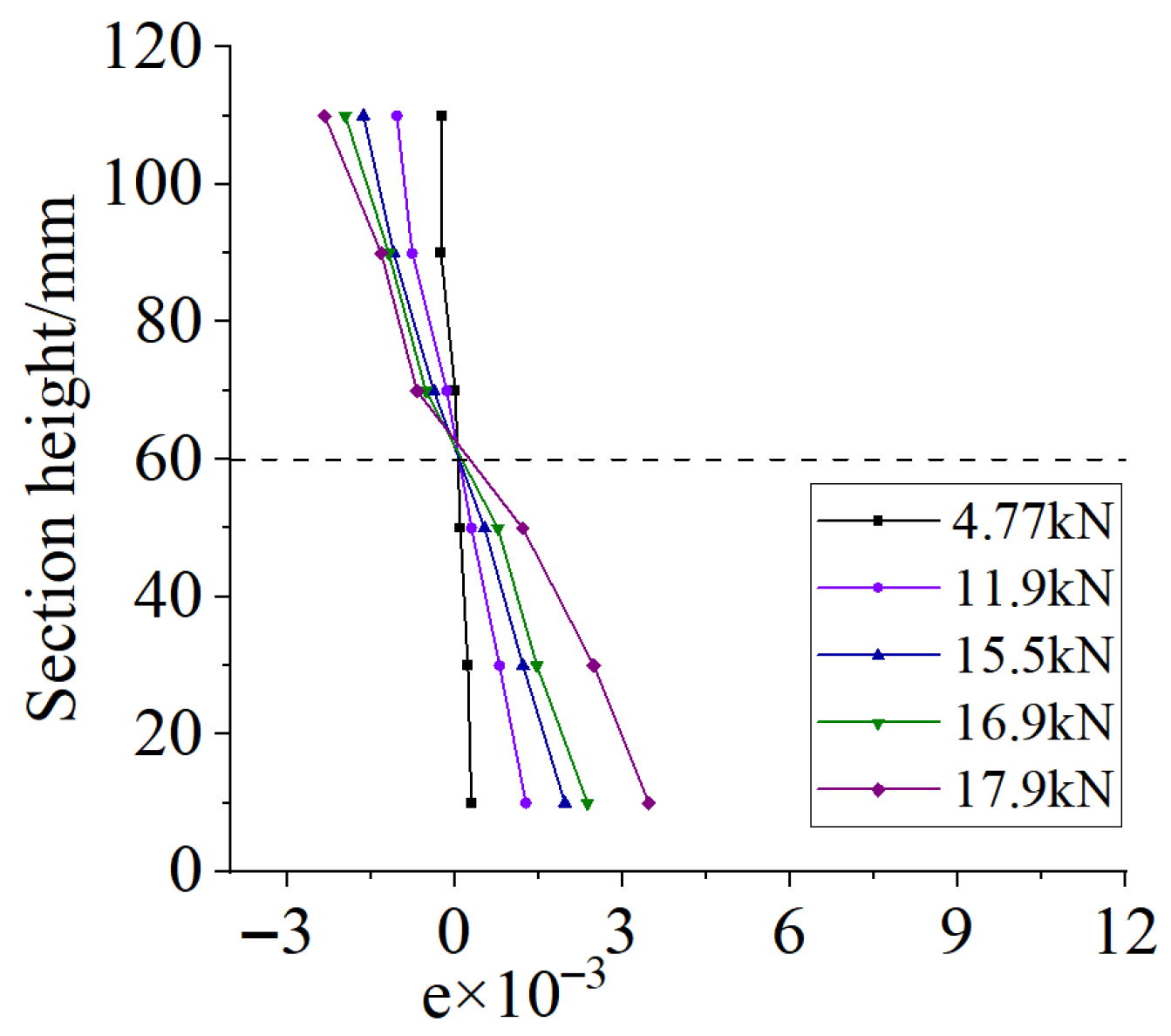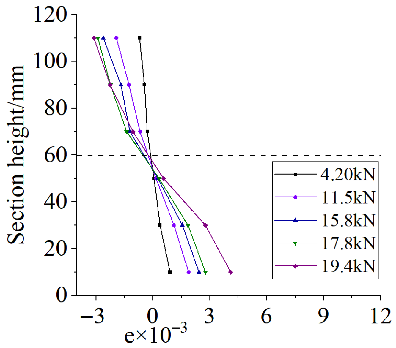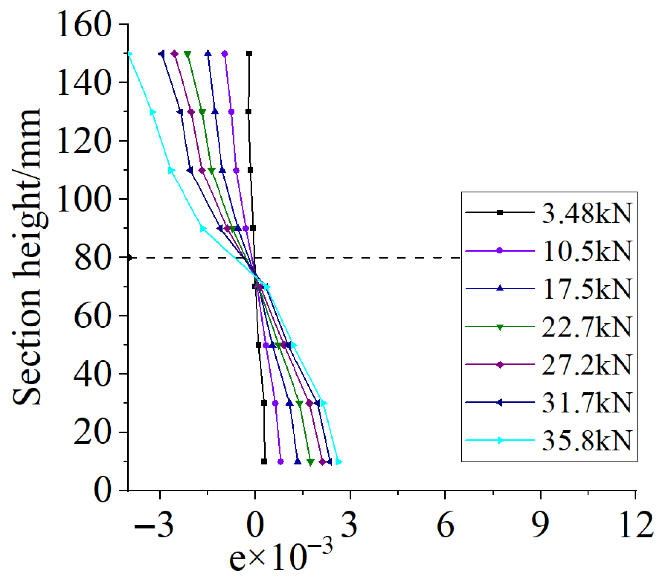 3.3.5. Comparison of Strain Relationship Curves at Mid-Span Section
