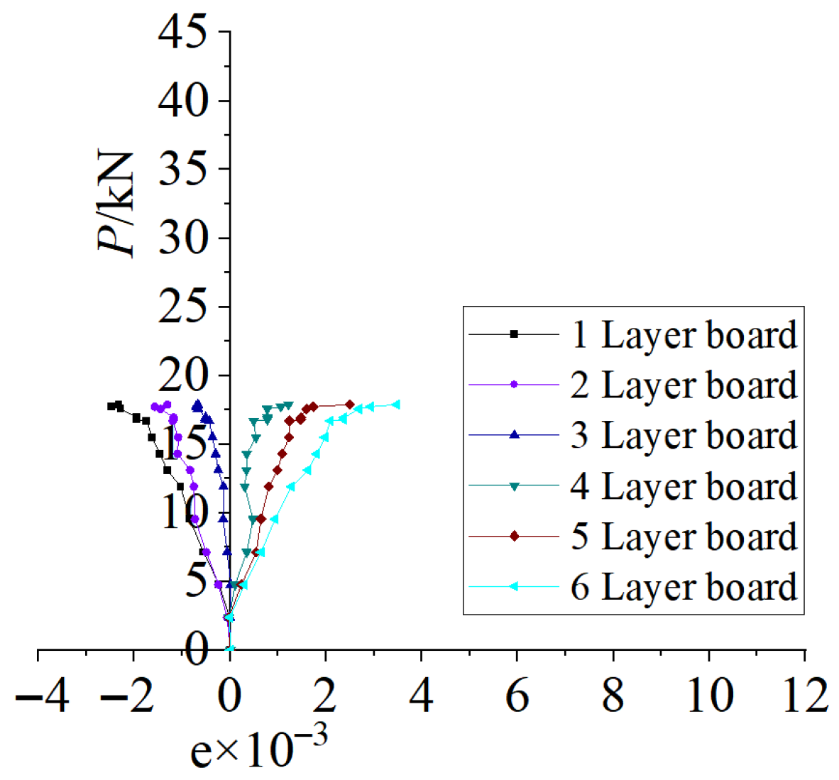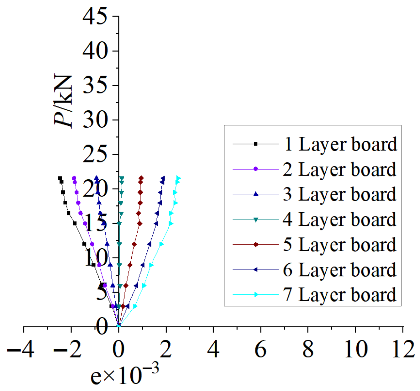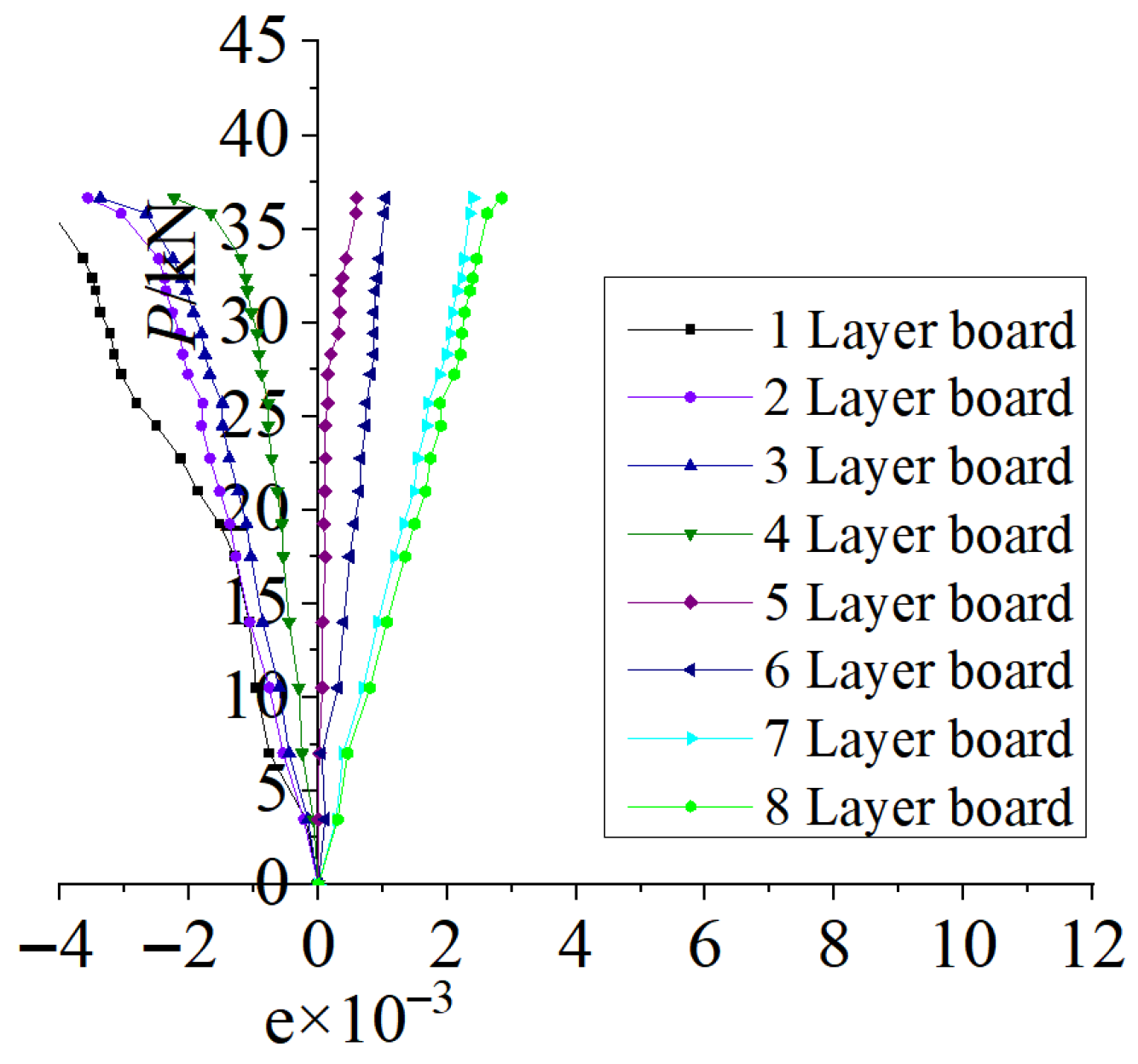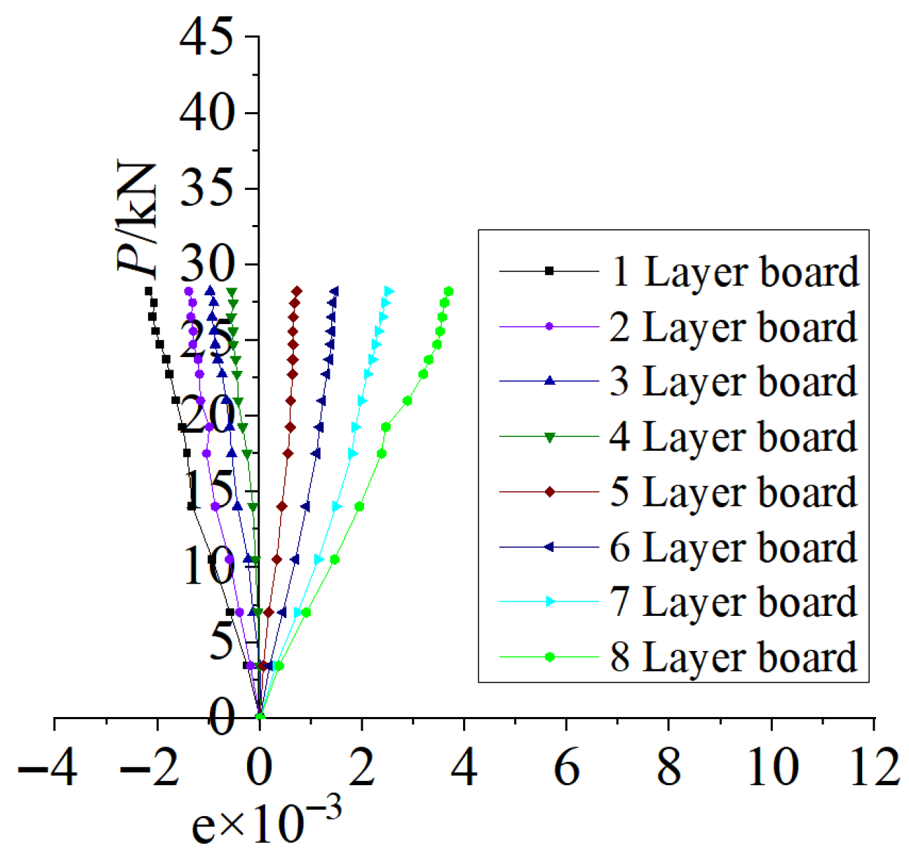 3.3.5. Comparison of Strain Relationship Curves at Mid-Span Section