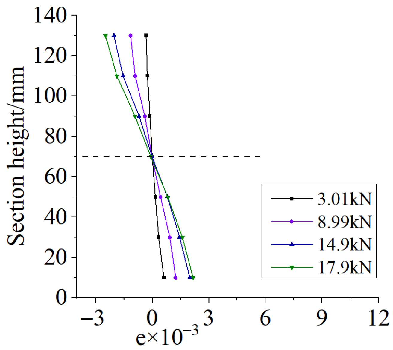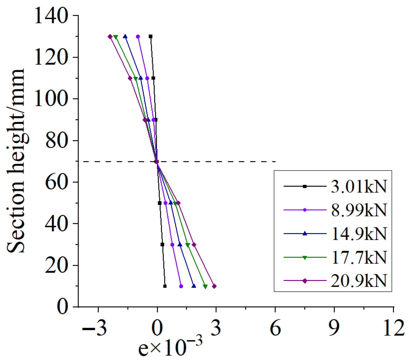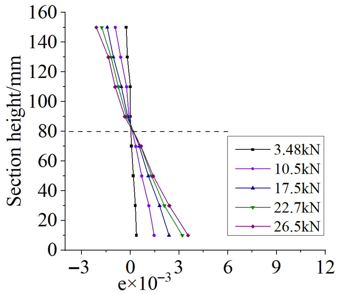- Mid-span strain remains essentially linear in both single-layer and double-layer reinforced specimens, supporting use of the plane section assumption.
