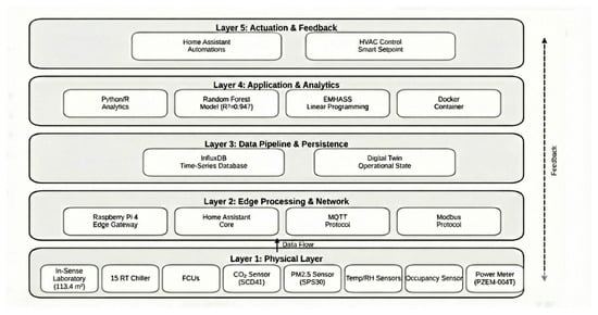 This study proposes a scalable cyber–physical system (CPS) framework utilizing a hierarchical five-layer architecture to enhance indoor environmental quality and energy efficiency. The methodology integrates a Random Forest-based predictive model trained on a 22-month longitudinal dataset (2024–2025) to separate climatic effects from occupancy-driven loads. This study prioritized the development of a high-precision and cost-effective monitoring architecture to address the persistent challenge of sustaining thermal comfort in subtropical academic laboratories. The proposed system achieved a validation mean absolute percentage error (MAPE) of 2.50%, indicating strong predictive reliability. Hardware expenditures were below USD 400, substantially reducing barriers to broader adoption. Field deployment confirmed an operational EUI of 188.6 kWh/m2·year, which is 28.5% lower than prevailing regional benchmarks, while consistently meeting stringent indoor air quality (IAQ) requirements. Additionally, simulation modules calibrated with the validated dataset indicated a further 15–20% reduction potential through the application of active control strategies. Collectively, these findings establish a transferable empirical reference for climate-responsive operational practice.