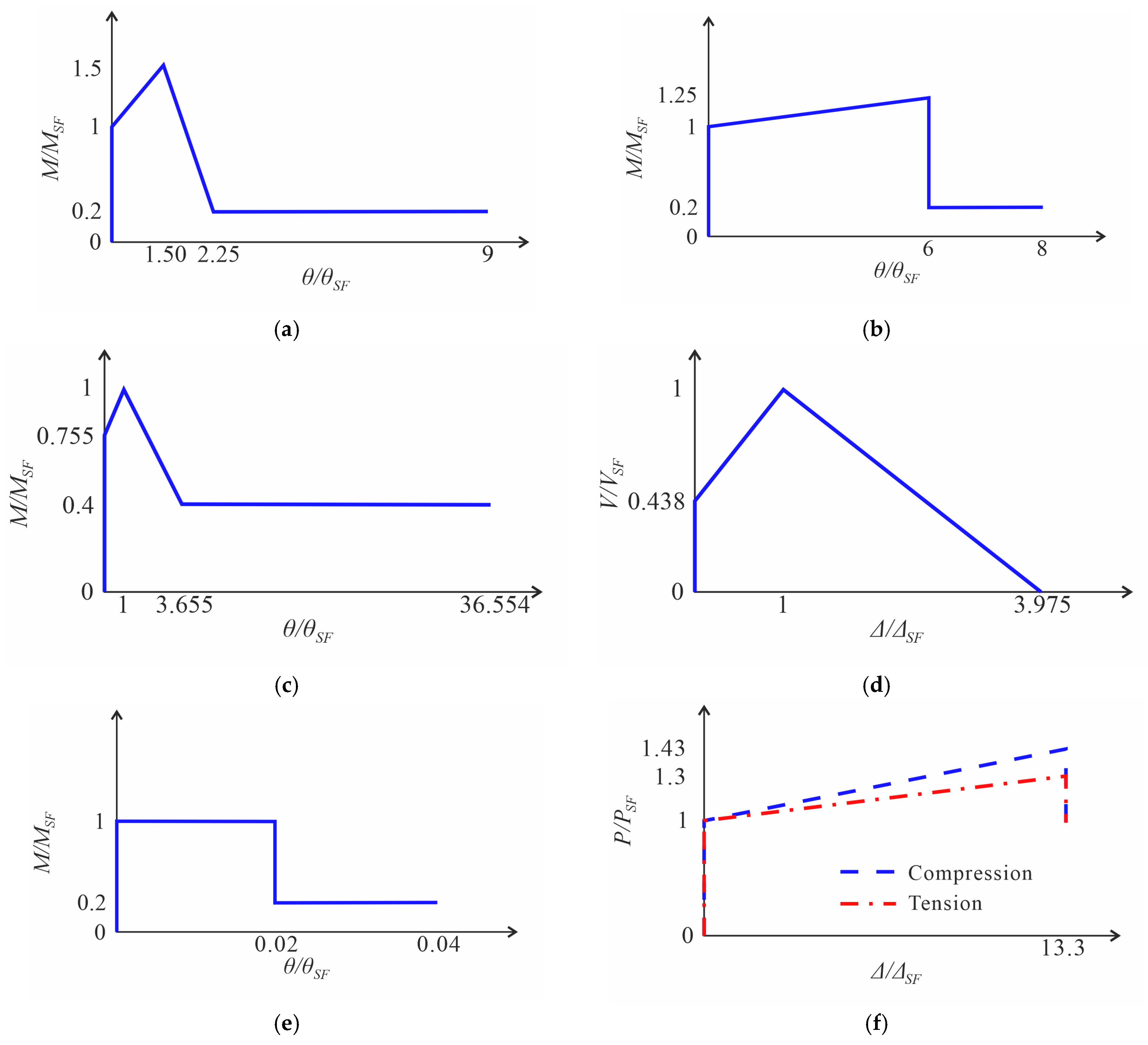 36], with backbone curves and rotation capacities appropriate for shear-dominated and axial-dominated members, respectively, as shown in