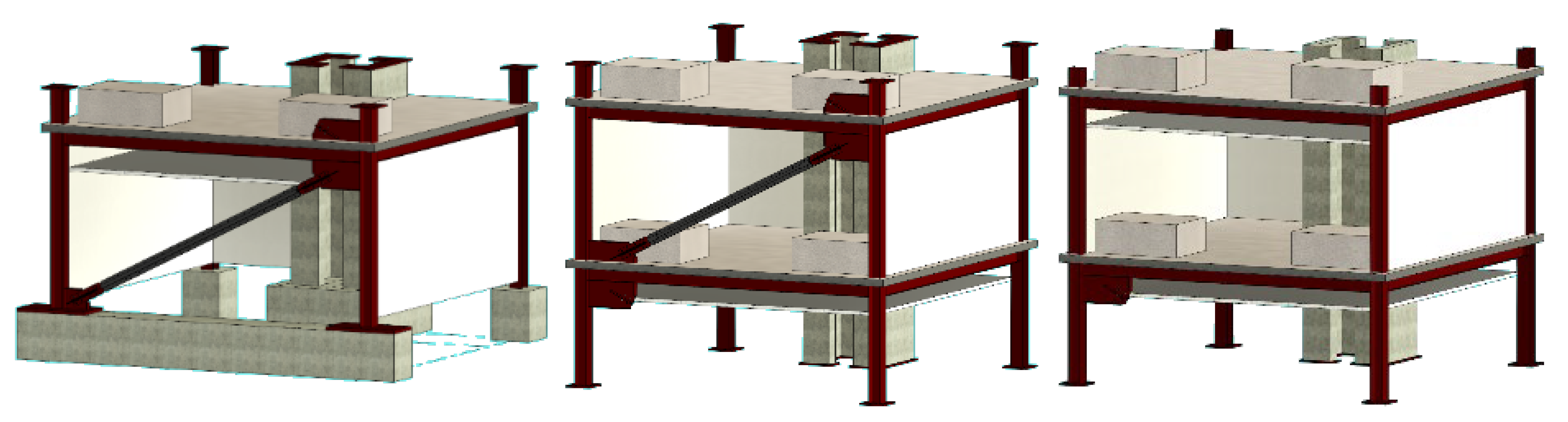 The forthcoming shaking table experiment is expected to serve as an essential step in validating the numerical predictions presented in this study and advancing the current understanding of the seismic performance of the hybrid steel–RC wall system. The experimental results will enable a direct comparison between the analytical and measured responses, thus helping to verify the modeling assumptions and assess the accuracy of the nonlinear simulation techniques. In addition to confirming the predicted global response, this test will also provide valuable insight into the mechanisms governing energy dissipation, torsional interaction, and deformation concentration within the coupled wall and frame components. These findings are expected to deepen the understanding of how hybrid systems respond under strong earthquake excitations and to support the refinement of design parameters related to strength, ductility, and stiffness balance. Ultimately, the experiment will contribute to the development of more reliable performance-based seismic design methodologies and will promote the broader practical implementation of hybrid structural systems in regions of high seismic risk.