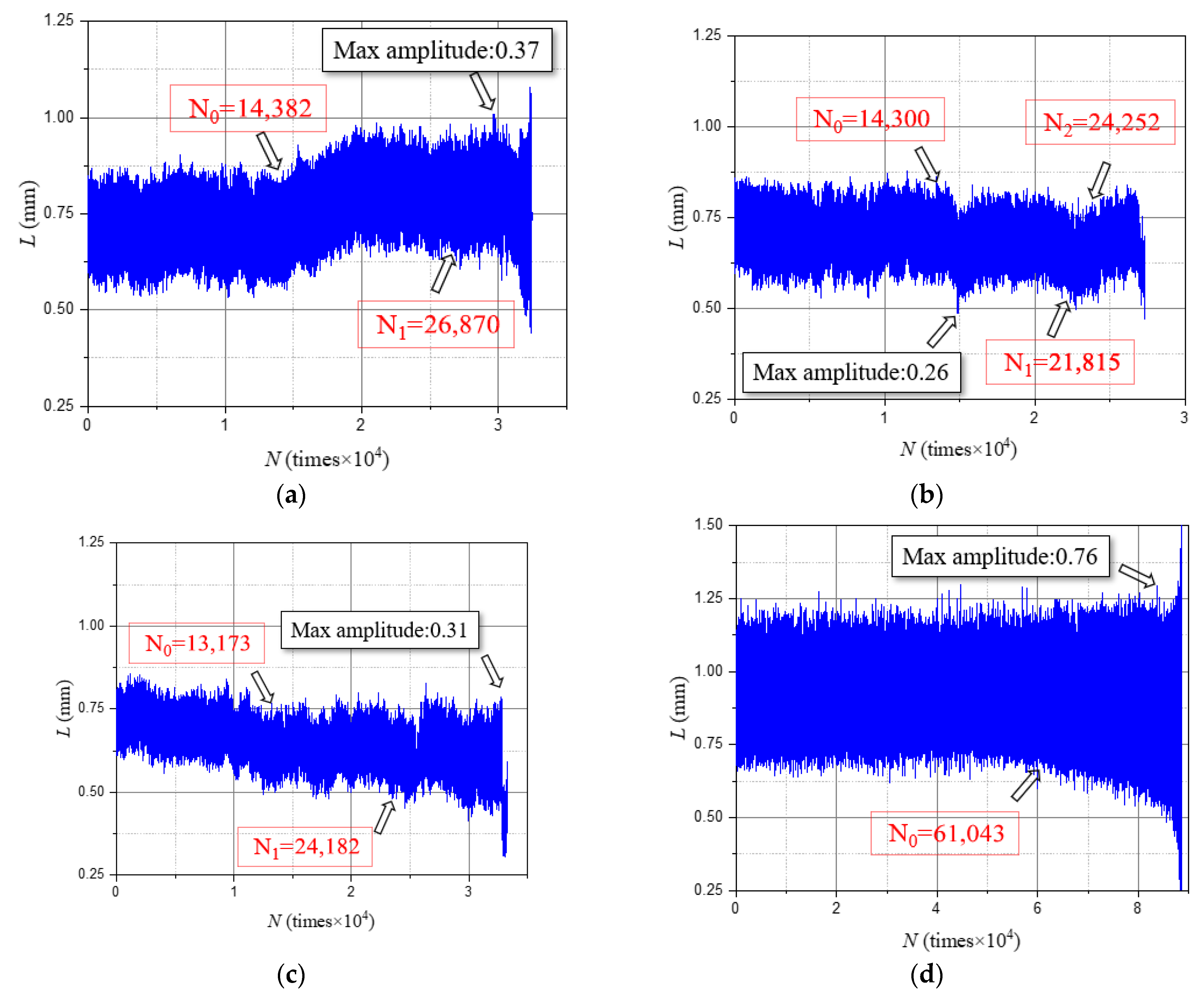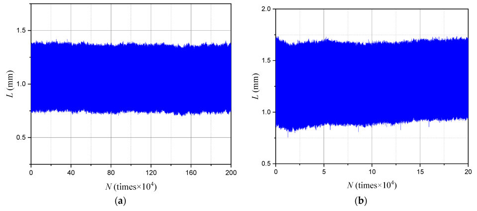 3.2. Number of Cycles and Axial Displacements