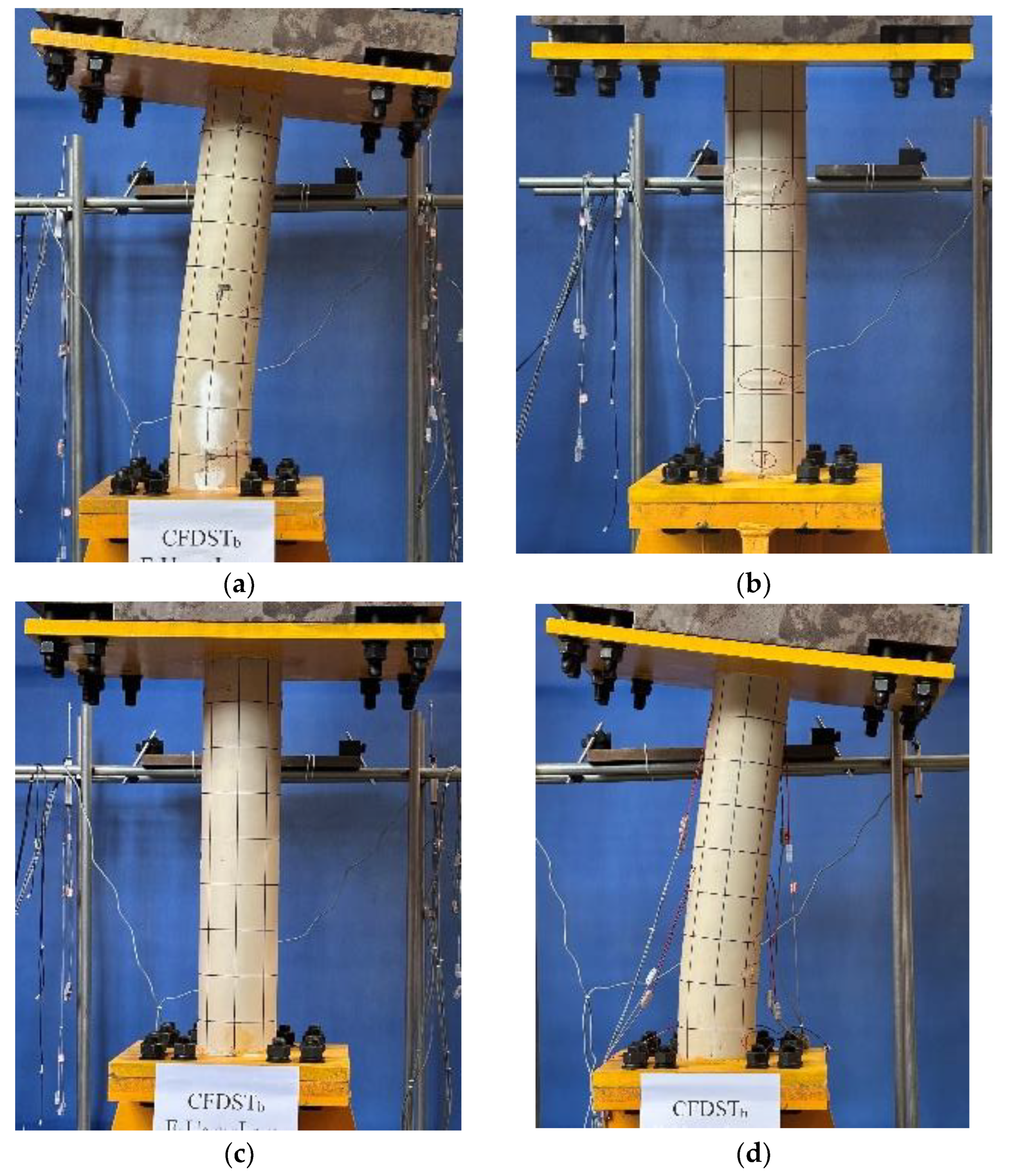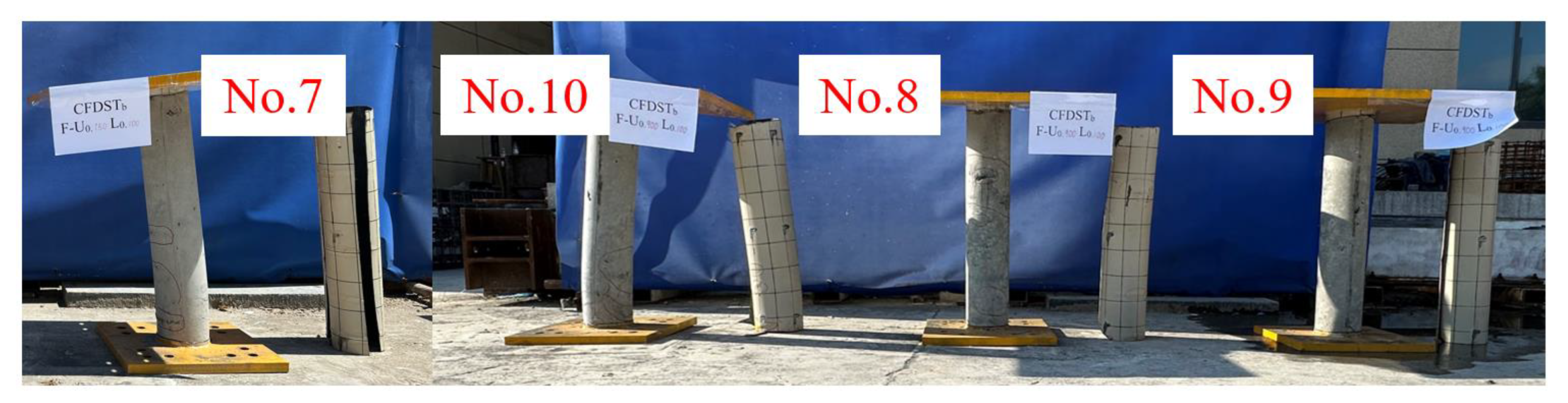 - Han, L.-H.; Huang, H.; Tao, Z.; Zhao, X.-L. Concrete-filled double skin steel tubular (CFDST) beam-columns subjected to cyclic bending. Eng. Struct. 2006, 28, 1698–1714. [Google Scholar] [CrossRef]