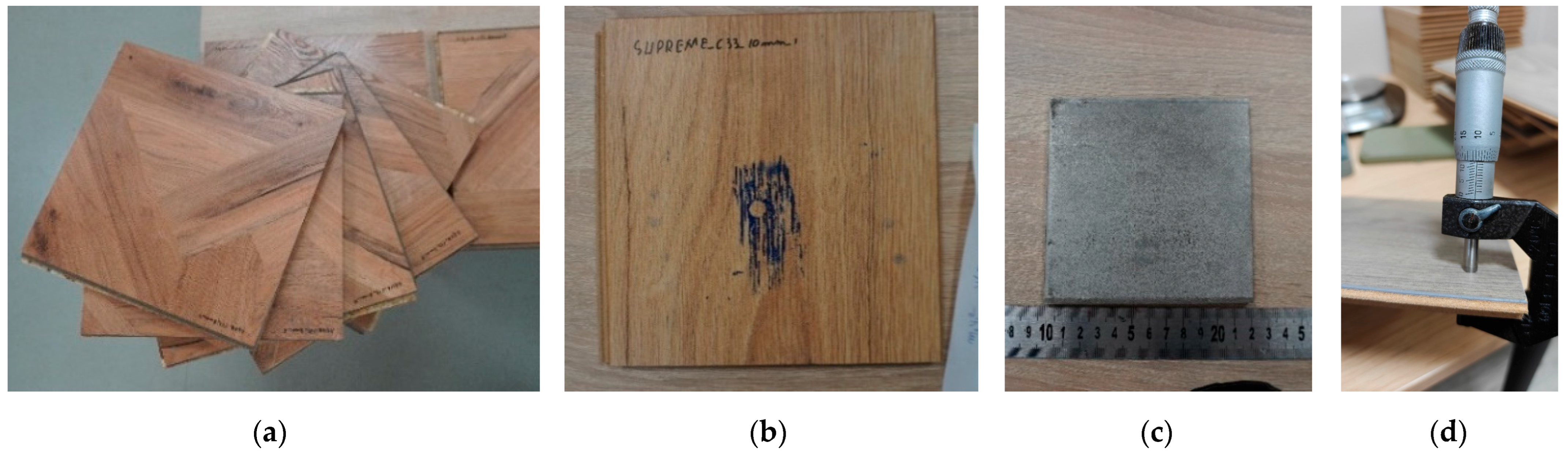 - ISO 24335:2022; Laminate Floor Coverings—Determination of Impact Resistance. ISO: Geneva, Switzerland, 2022.